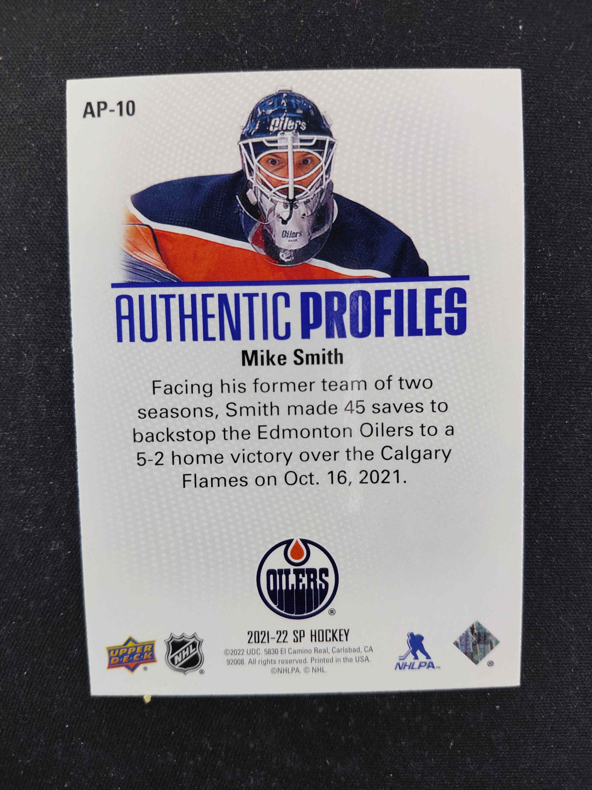 Sběratelská karta 2021/2022 Upper Deck SP Authentic Profiles Blue AP-10 Mike Smith Inzert