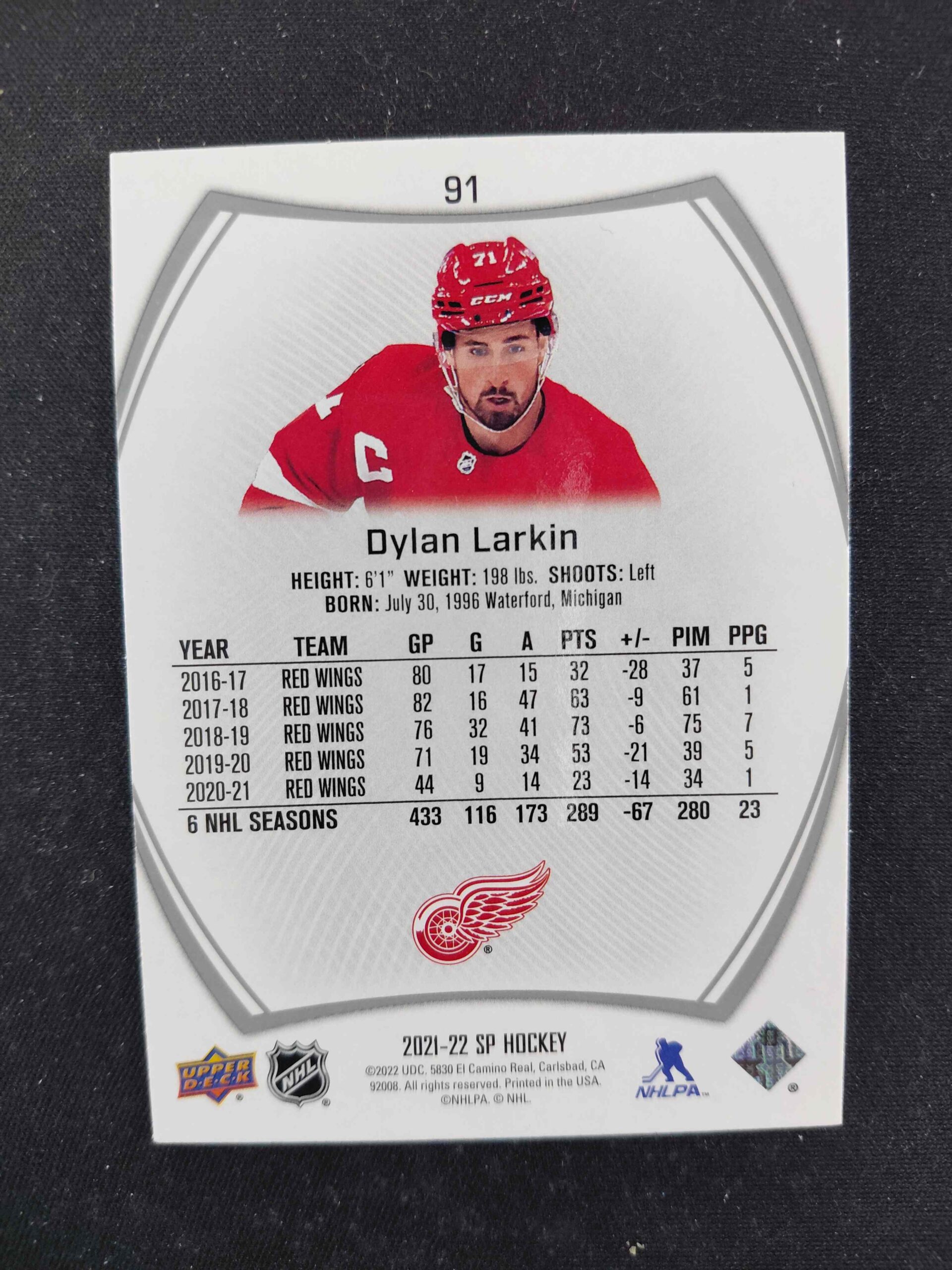 2021/2022 Upper Deck SP Base 91 Dylan Larkin