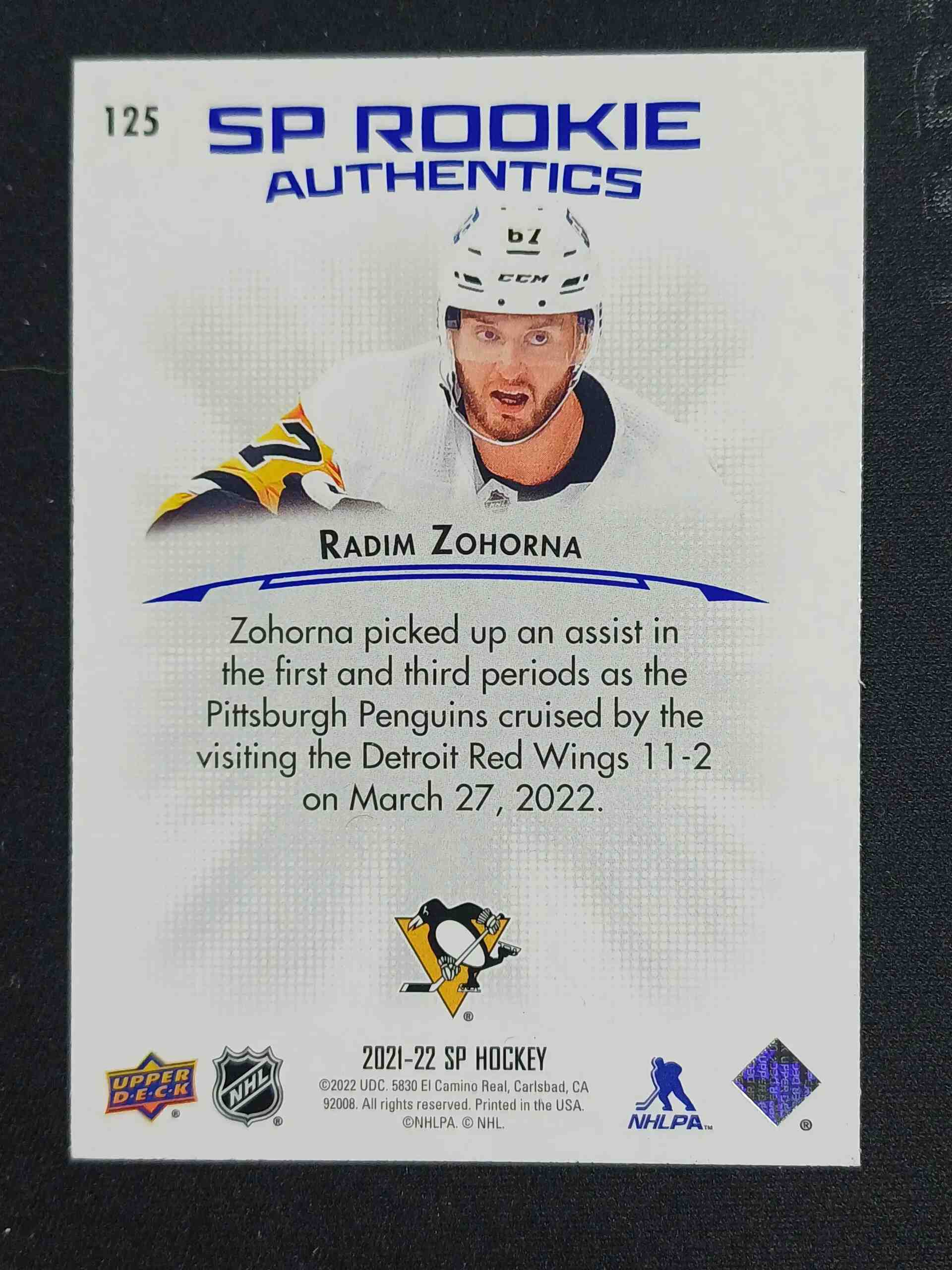 Sběratelská karta 2021/2022 Upper Deck SP Rookie Authentics 125 Radim Zohorna Paralel