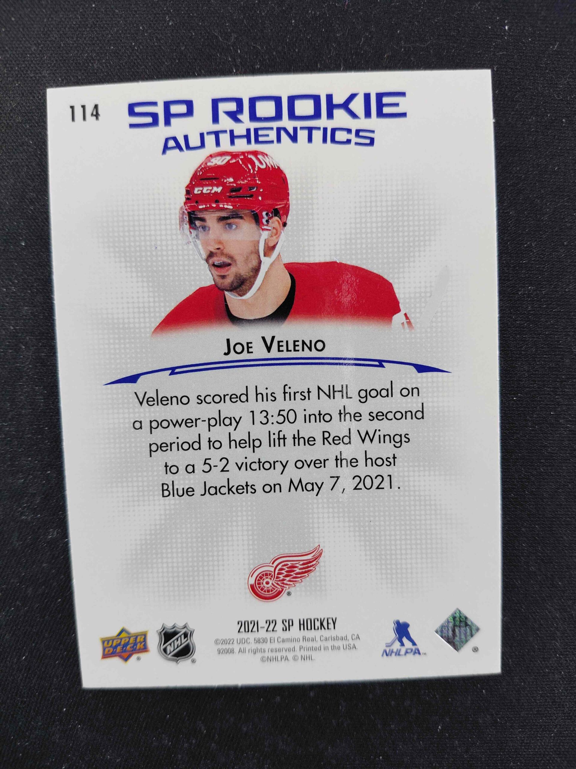 Sběratelská karta 2021/2022 Upper Deck SP Rookie Authentics Blue 114 Joe Veleno Inzert
