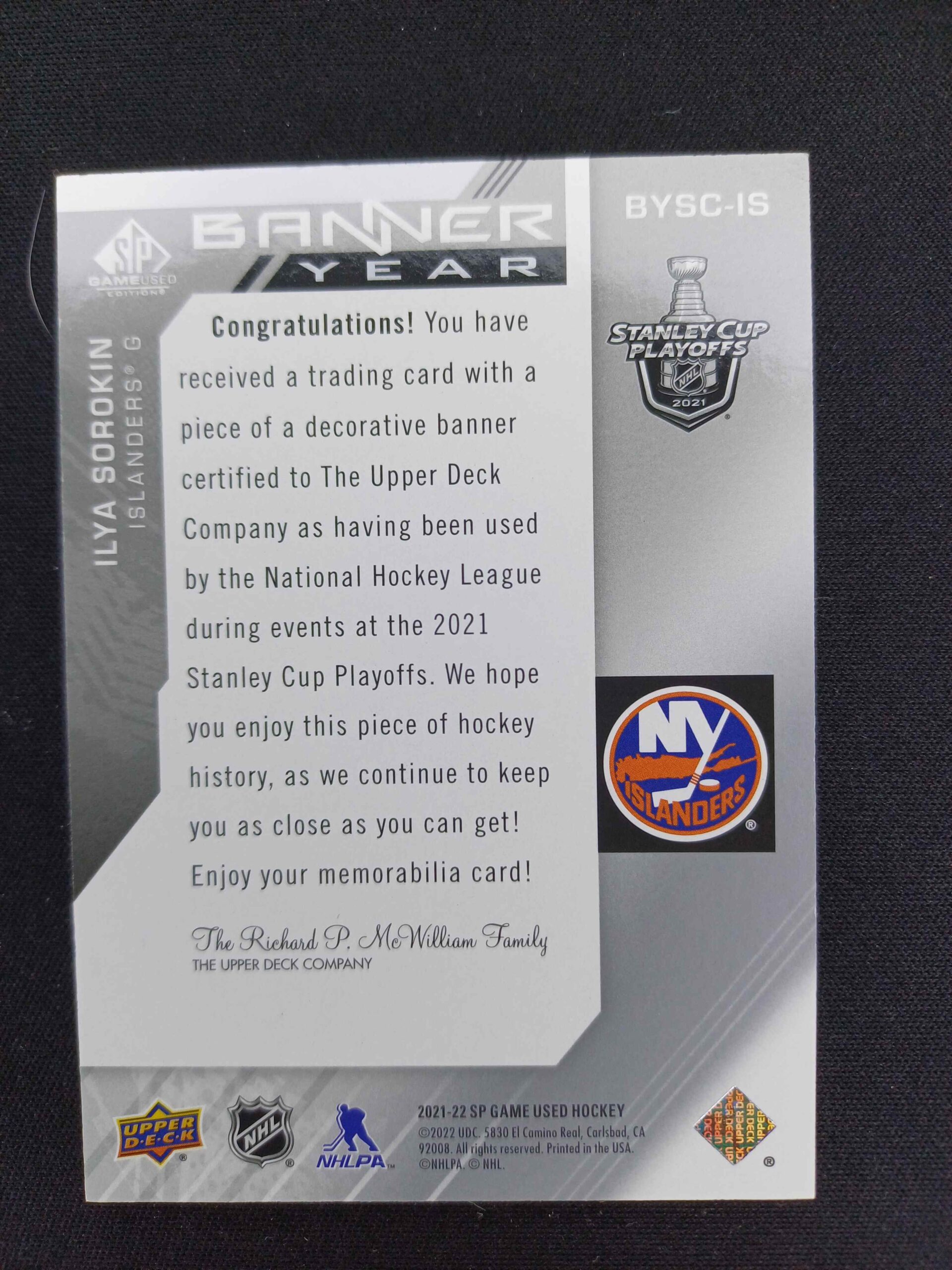 2021/2022 Upper Deck SPGU Banner Year BYSC-IS Ilya Sorokin Jersey