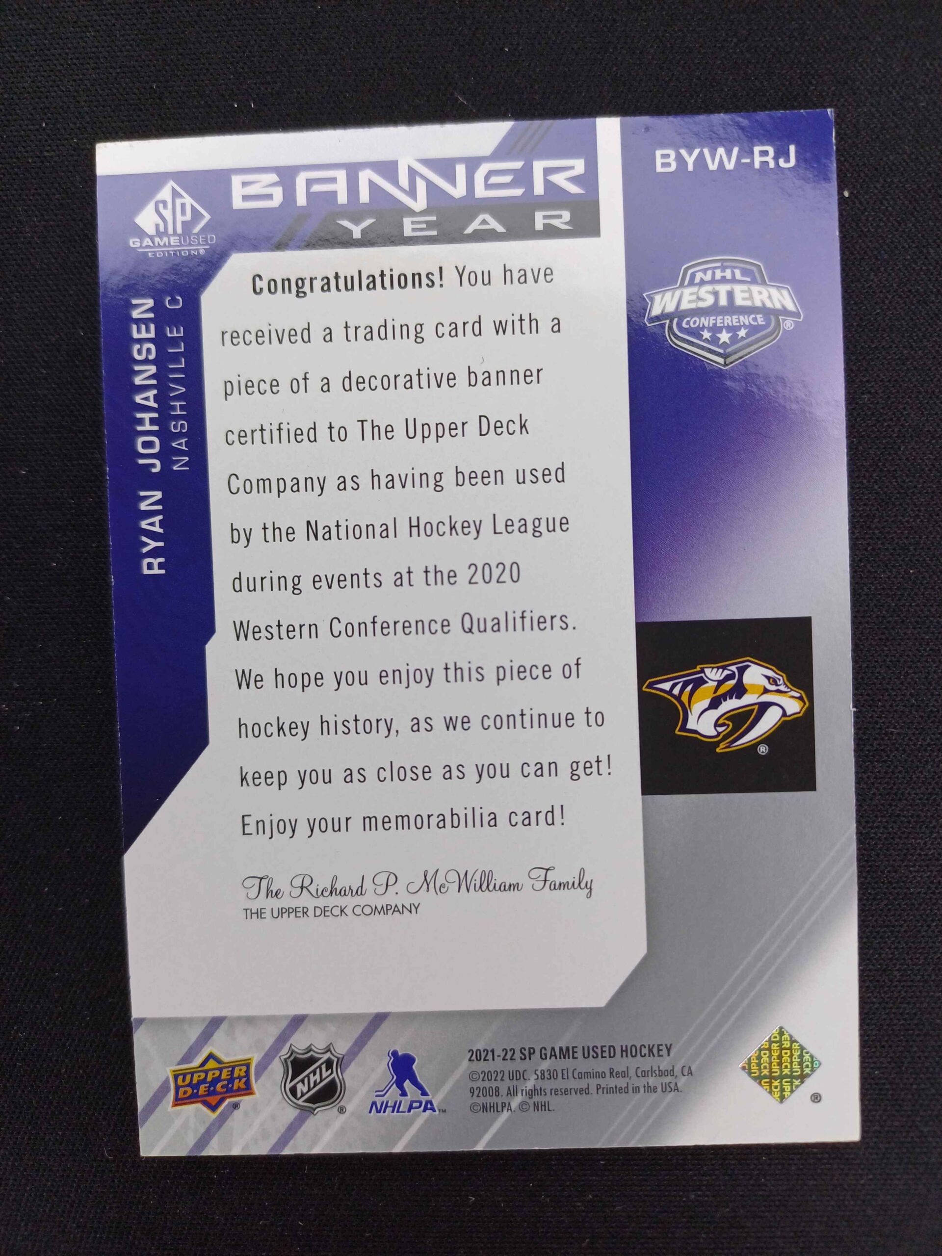 Sběratelská karta 2021/2022 Upper Deck SPGU Banner Year BYW-RJ Alex Tuch Jersey