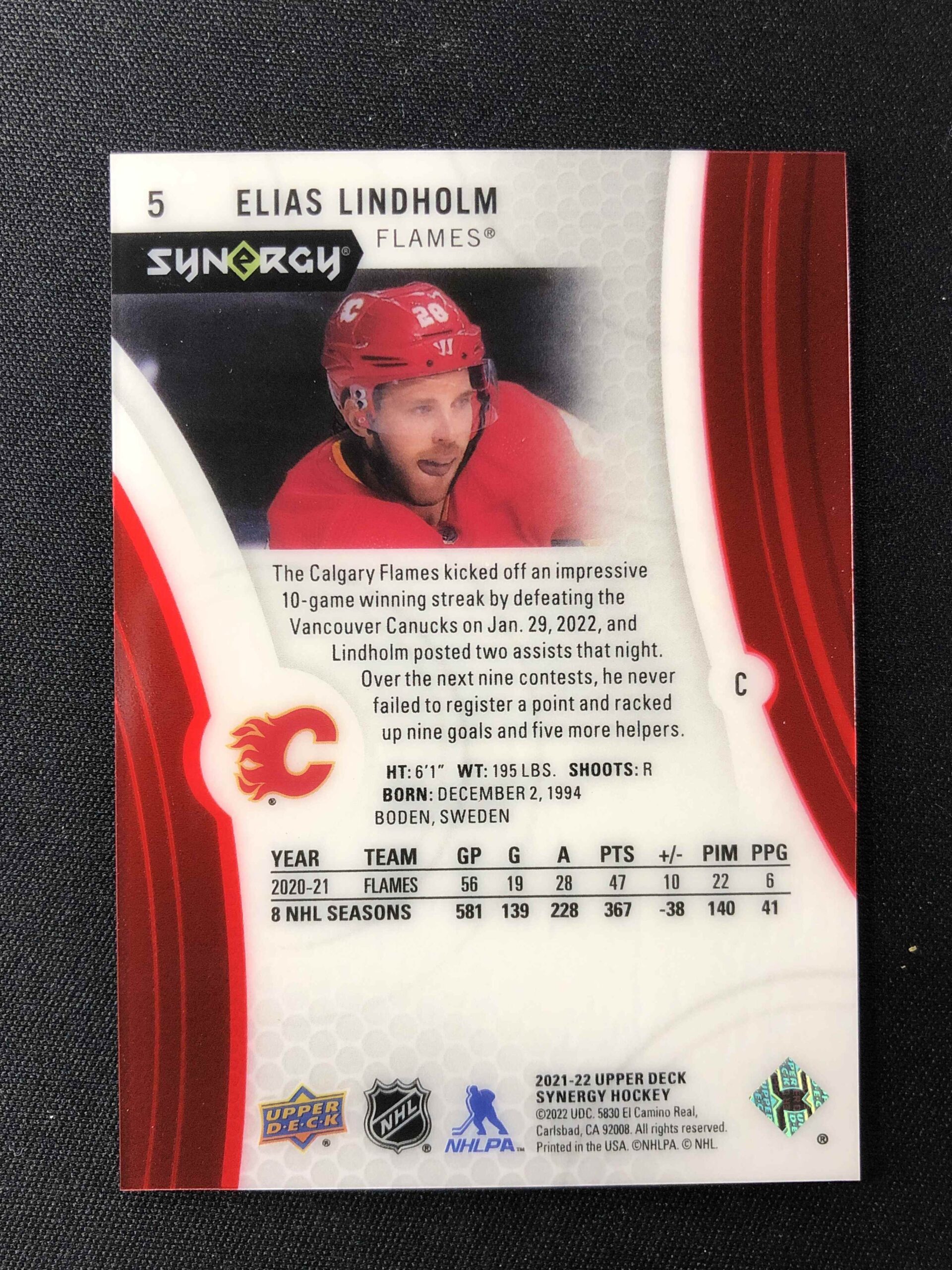 Sběratelská karta 2021/2022 Upper Deck Synergy Base 5 Elias Lindholm