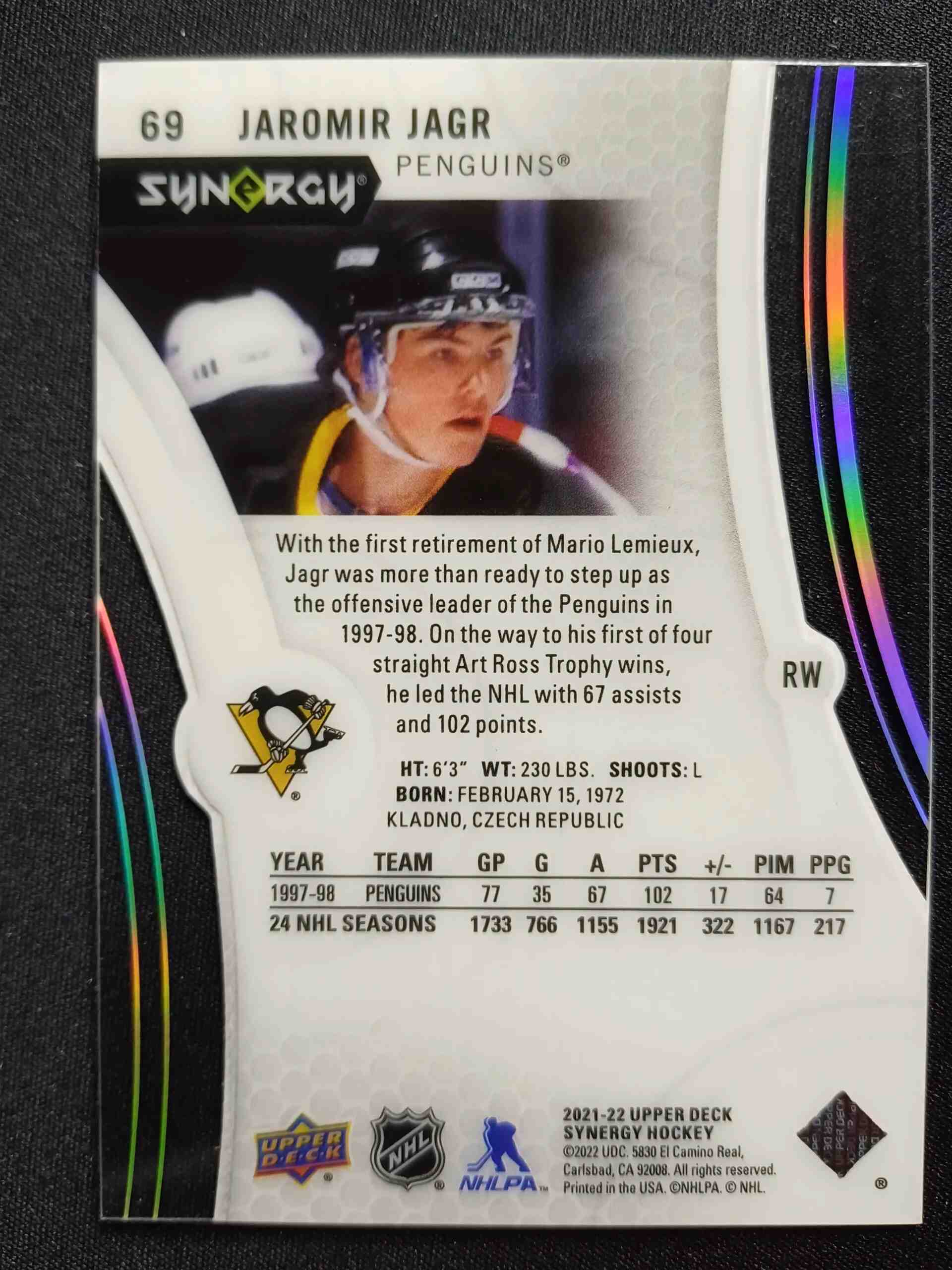 Sběratelská karta 2021/2022 Upper Deck Synergy Base 69 Jaromir Jagr 12/12