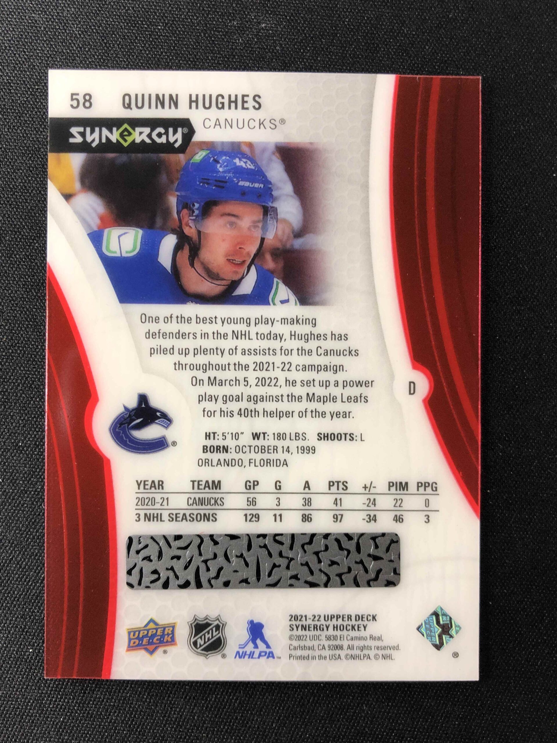 2021/2022 Upper Deck Synergy Red Bounty 58 Quinn Hughes Paralel