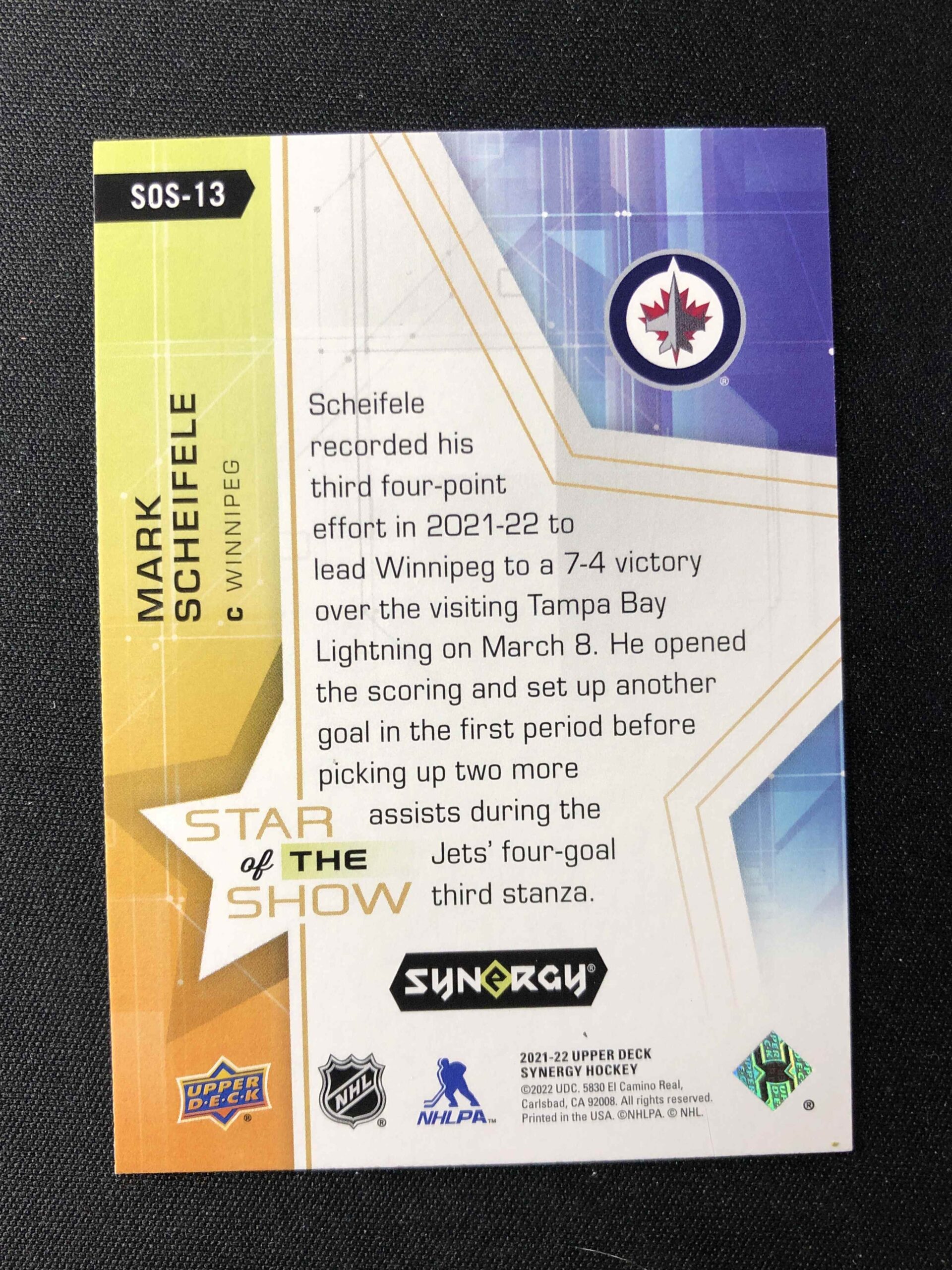 Sběratelská karta 2021/2022 Upper Deck Synergy Star of the Show SOS-13 Mark Scheifele Inzert