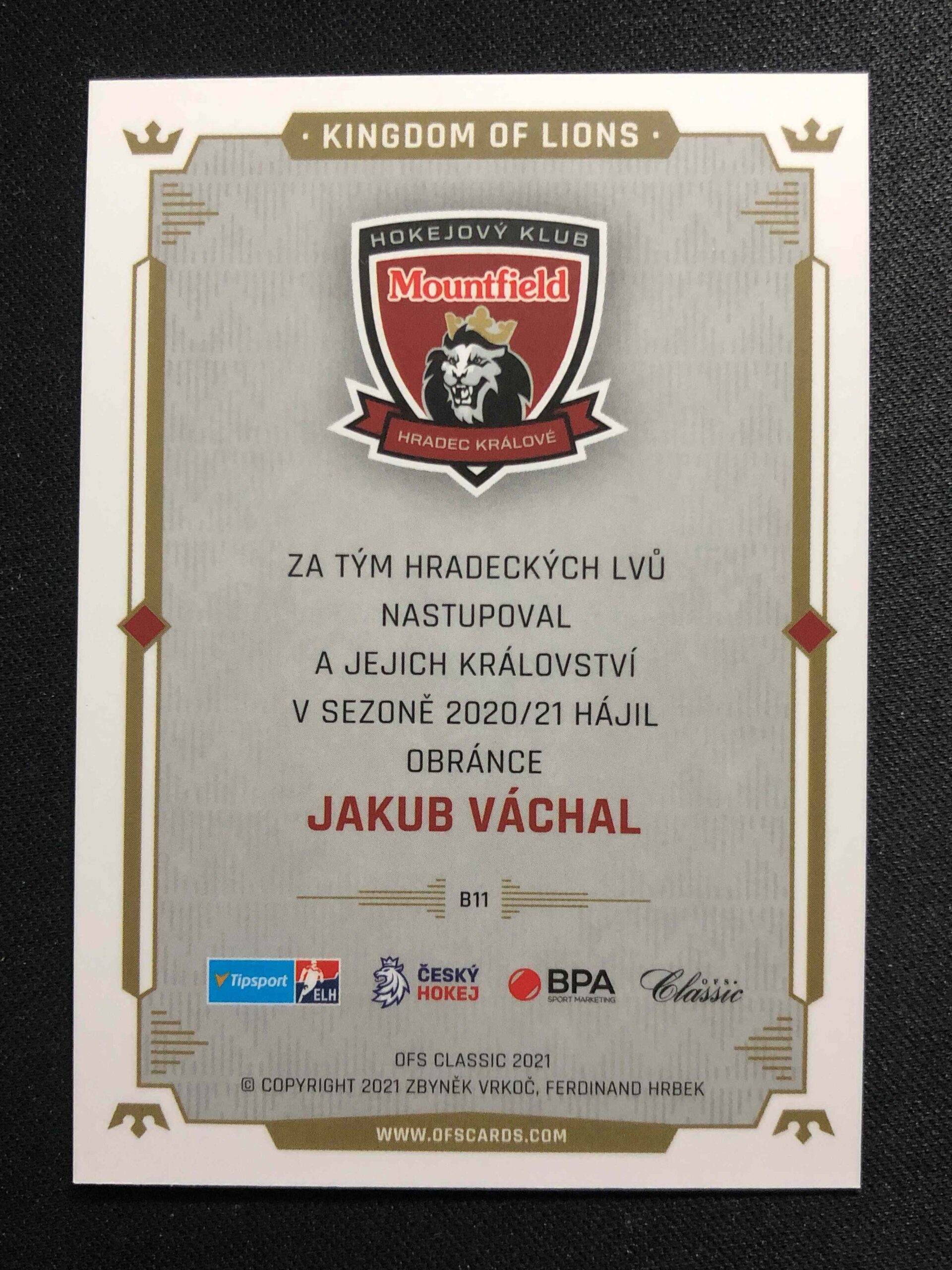 Sběratelská karta 2021 OFS Classic Kingdom of Lions B11 Jakub Váchal