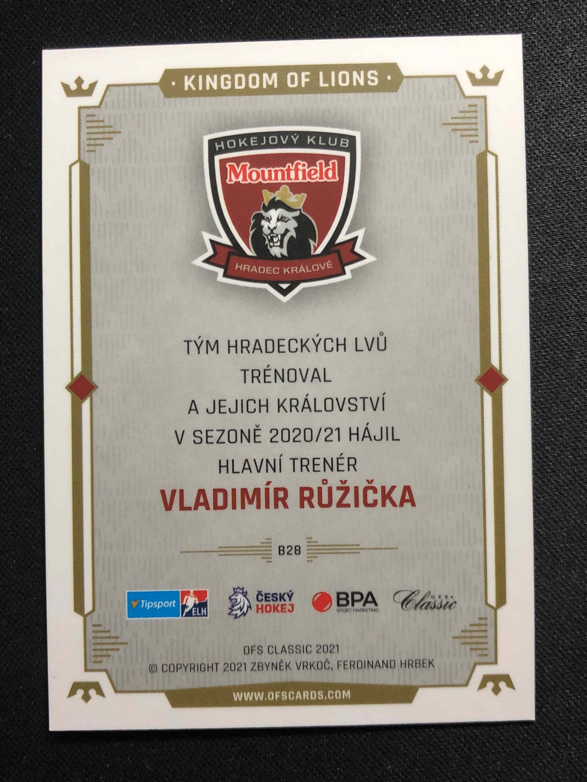 Sběratelská karta 2021 OFS Classic Kingdom of Lions B28 Vladimír Růžička