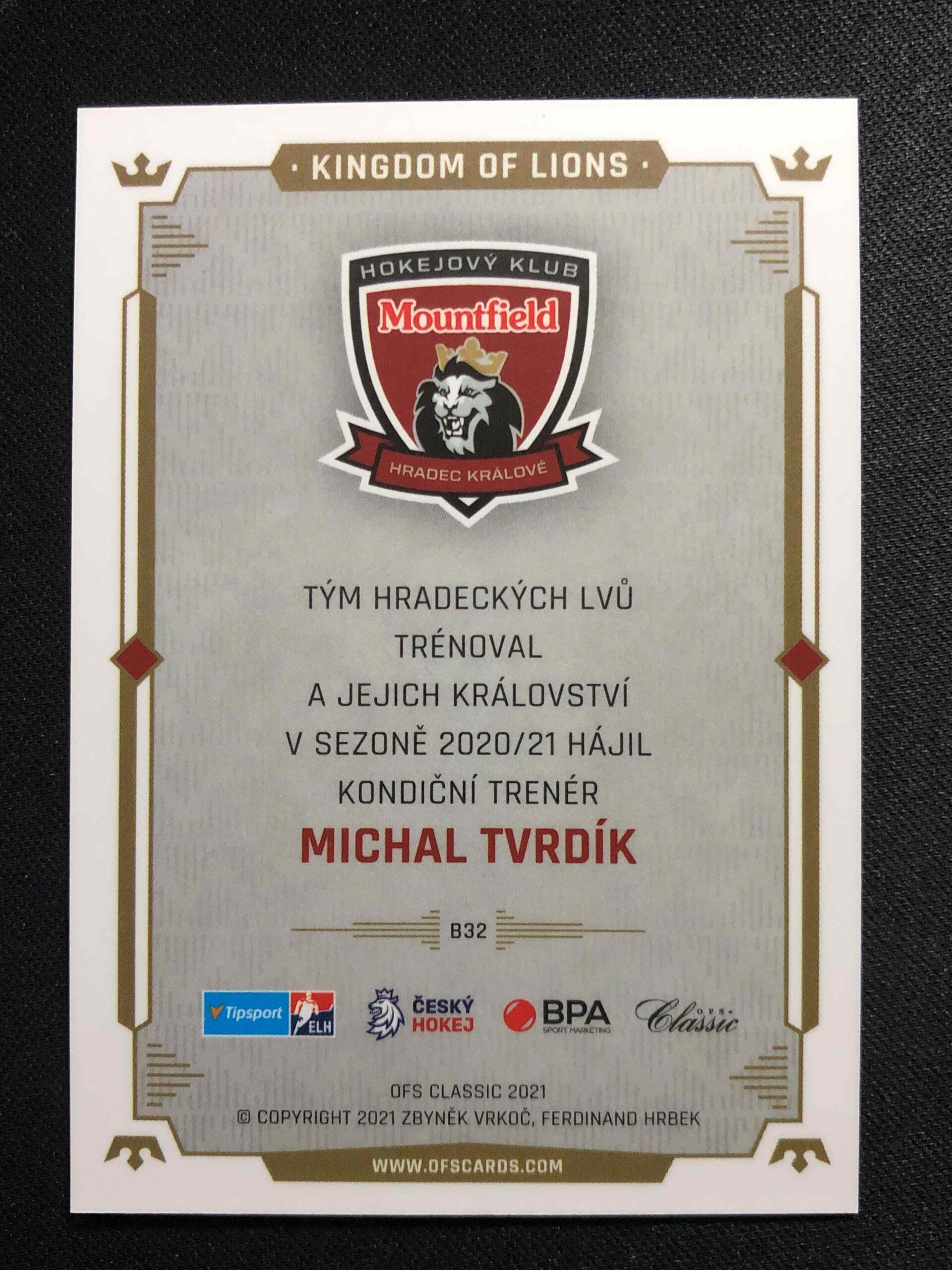 Sběratelská karta 2021 OFS Classic Kingdom of Lions B32 Michal Tvrdík