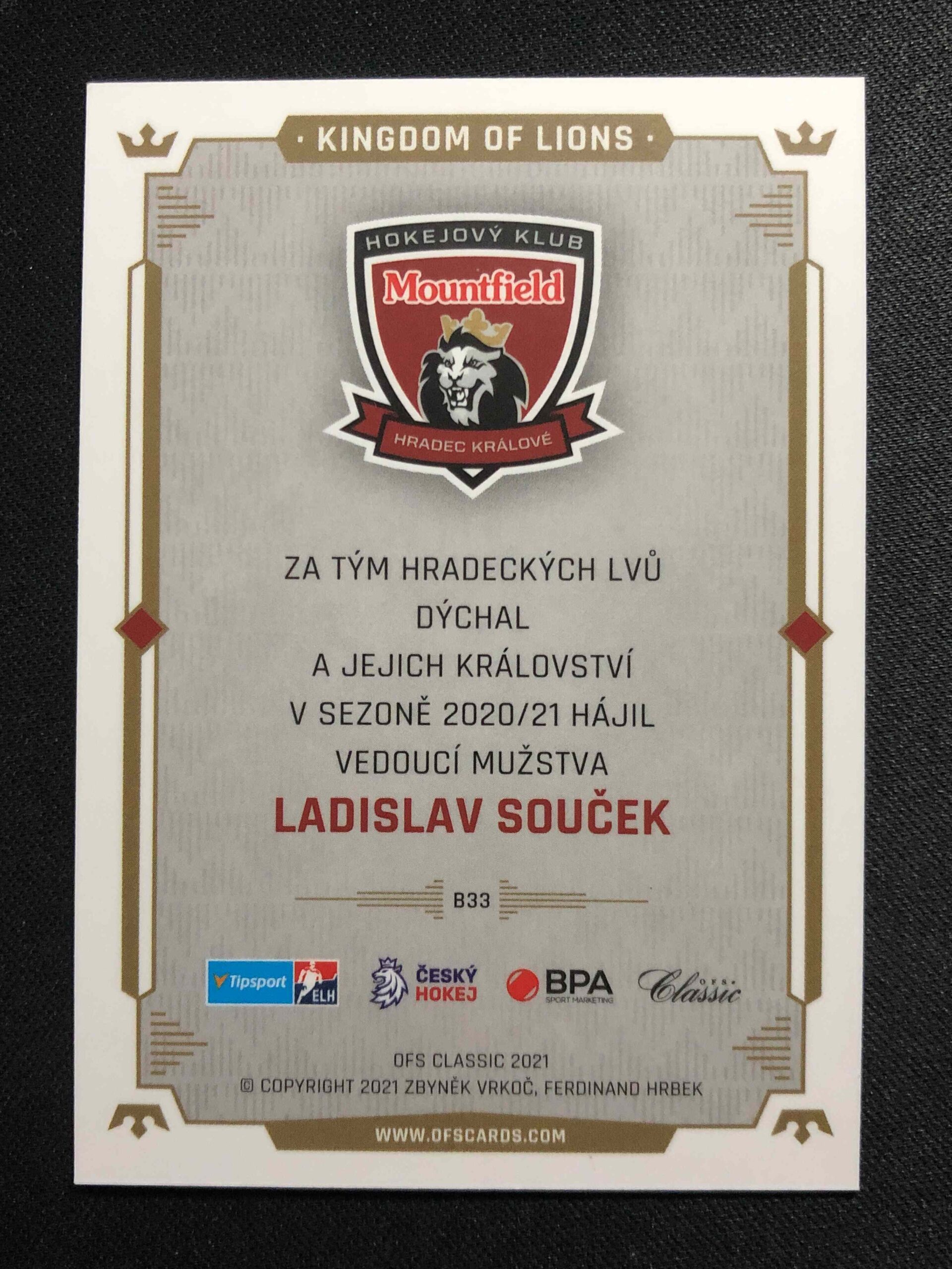 Sběratelská karta 2021 OFS Classic Kingdom of Lions B33 Ladislav Souček
