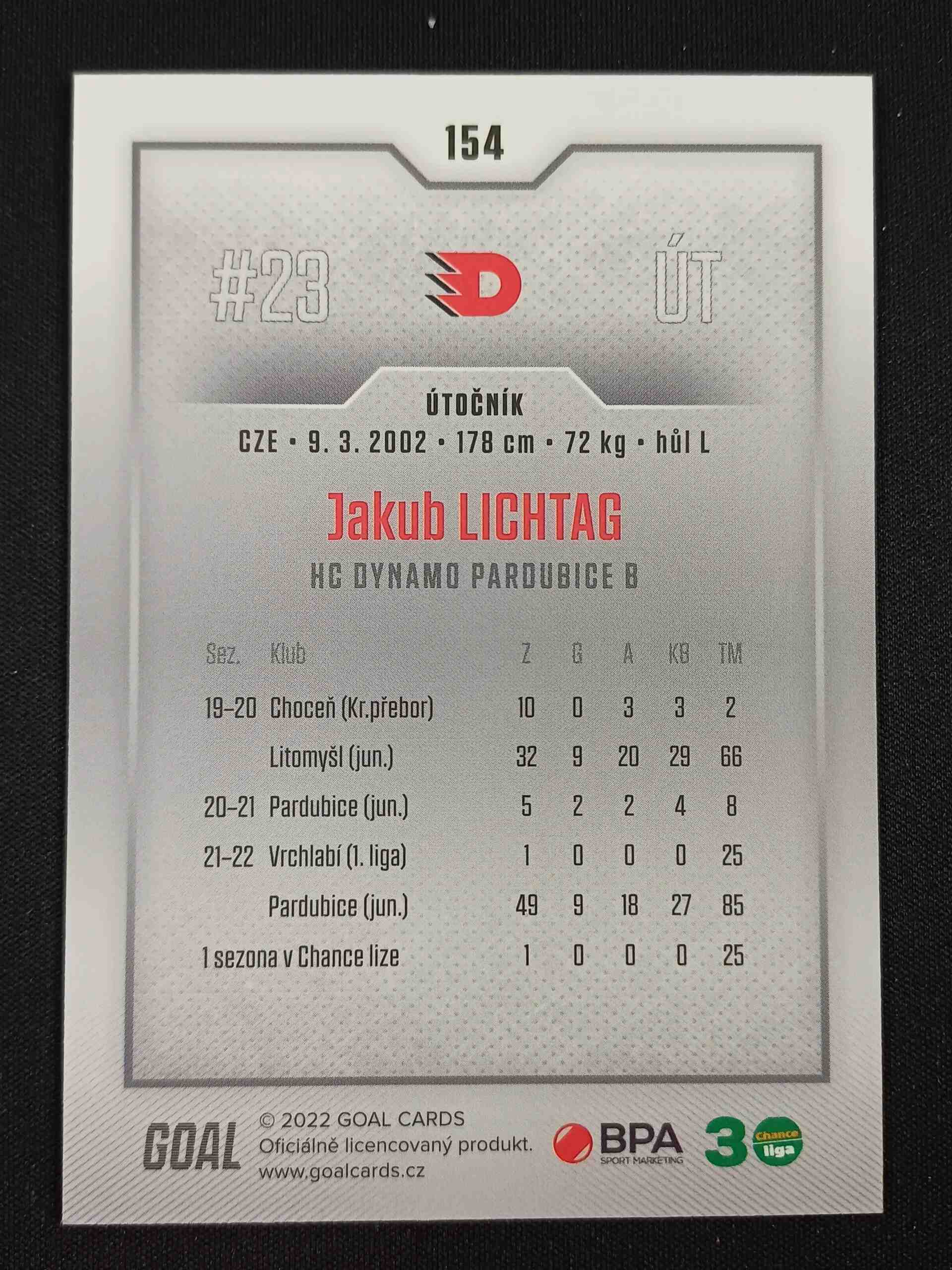 Sběratelská karta 2022/2023 Goal Serie 1 Base 154 Jakub Lichtag