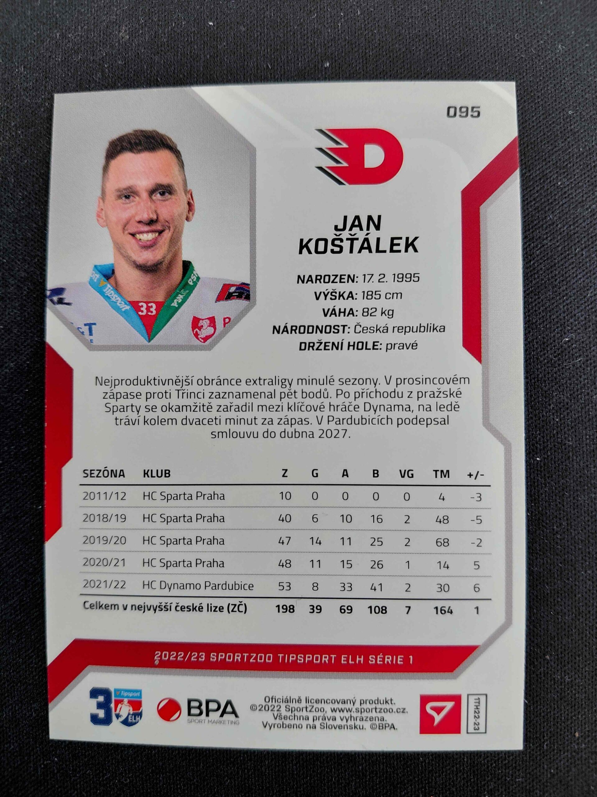 Sběratelská karta 2022/2023 Sportzoo Serie 1 Base 95 Jan Košťálek