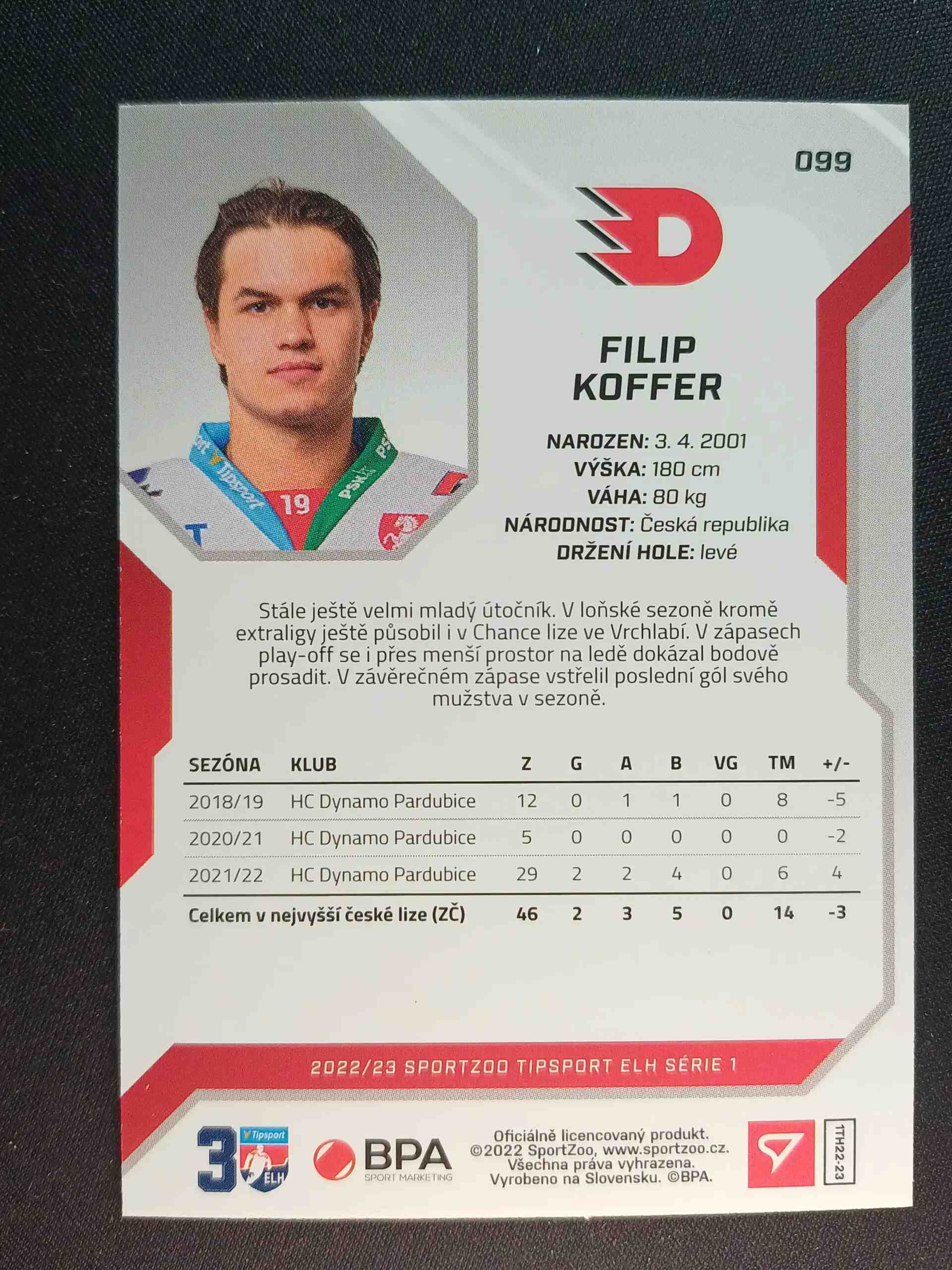 Sběratelská karta 2022/2023 Sportzoo Serie 1 Base 99 Filip Koffer