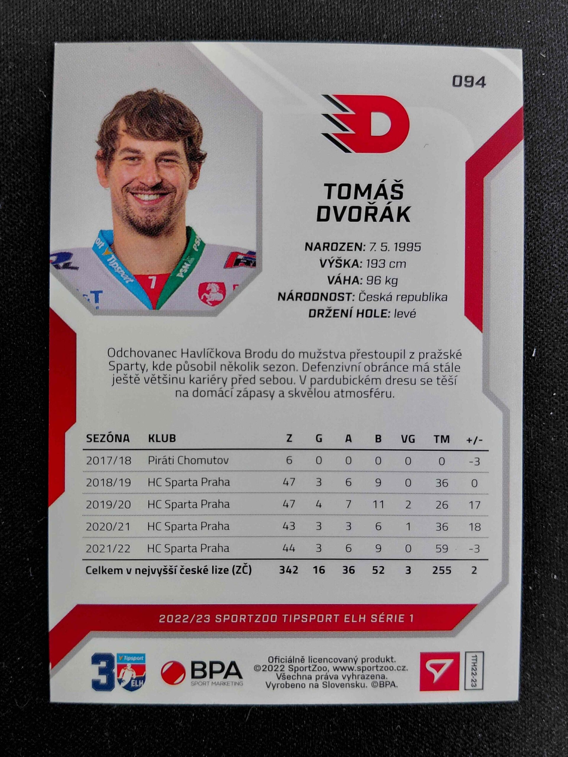 Sběratelská karta 2022/2023 Sportzoo Serie 1 Base Promo Card 94 Tomáš Dvořák