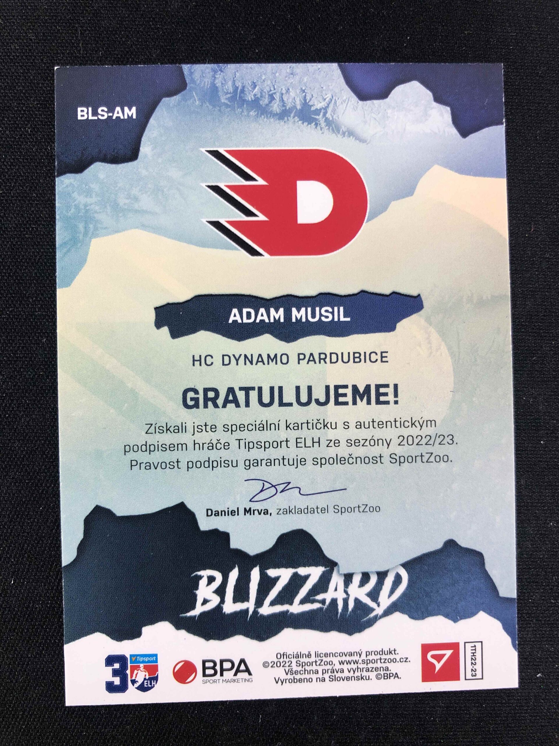 Sběratelská karta 2022/2023 Sportzoo Serie 1 Blizzard AUTO BLS-AM Adam Musil AUTO 18/50