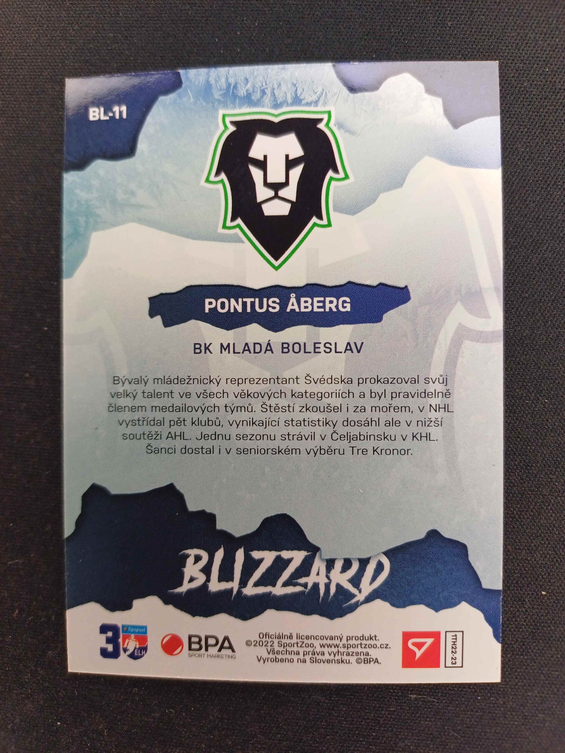 Sběratelská karta 2022/2023 Sportzoo Serie 1 Blizzard BL-11 Pontus Aberg Inzert