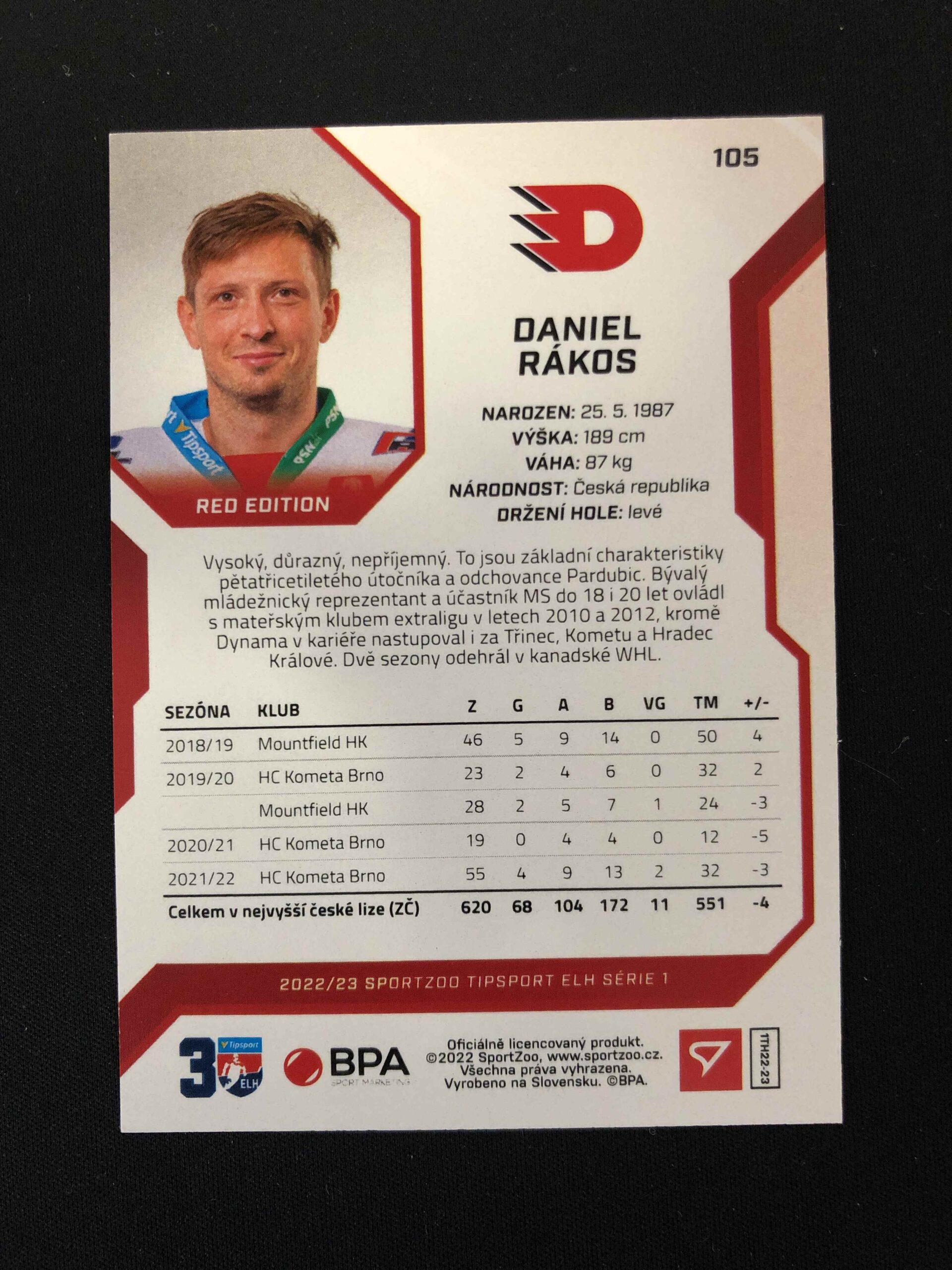 Sběratelská karta 2022/2023 Sportzoo Serie 1 Red 105 Daniel Rákos Paralel 02/49