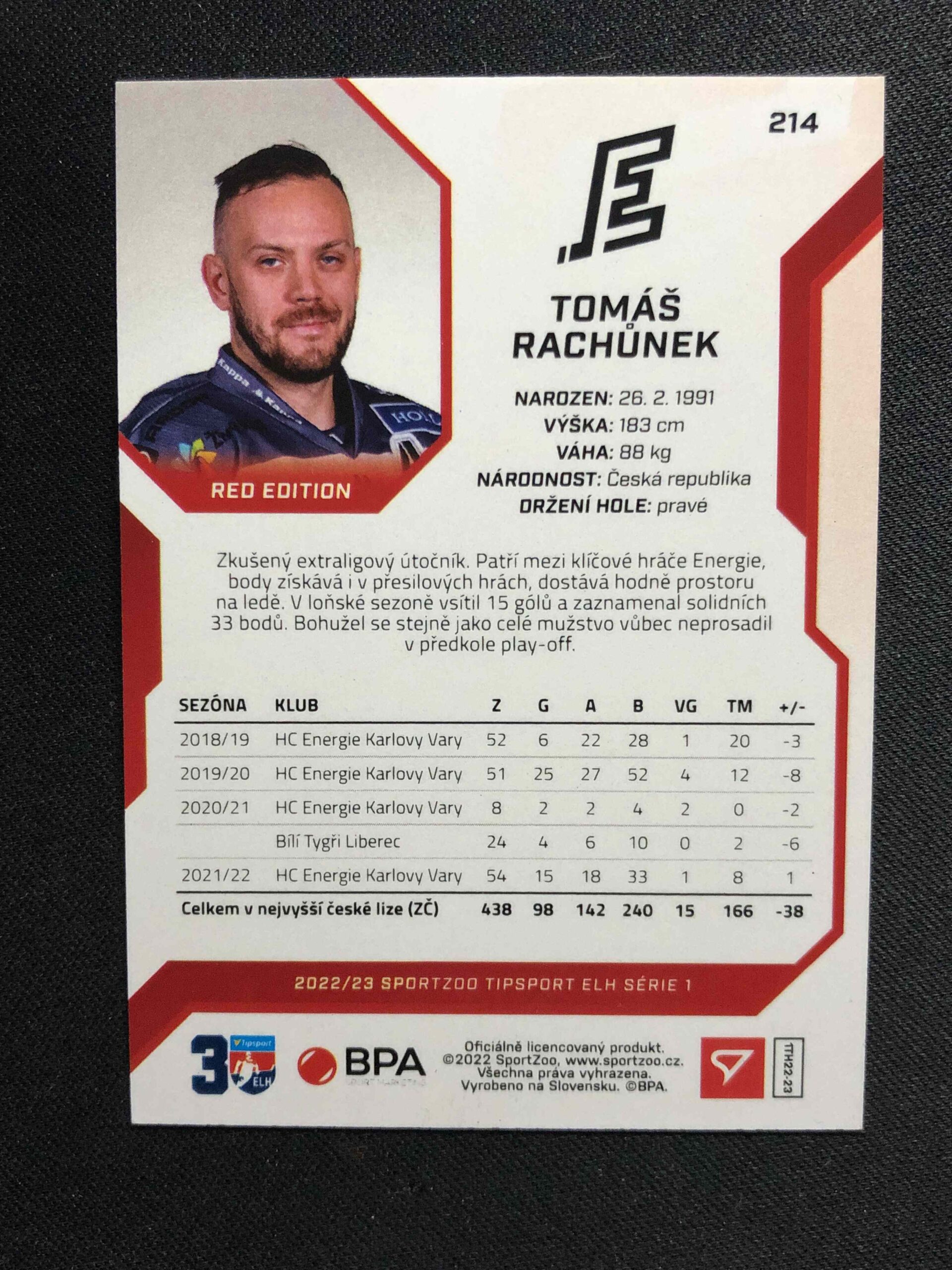 Sběratelská karta 2022/2023 Sportzoo Serie 1 Red 214 Tomáš Rachůnek Paralel 15/49