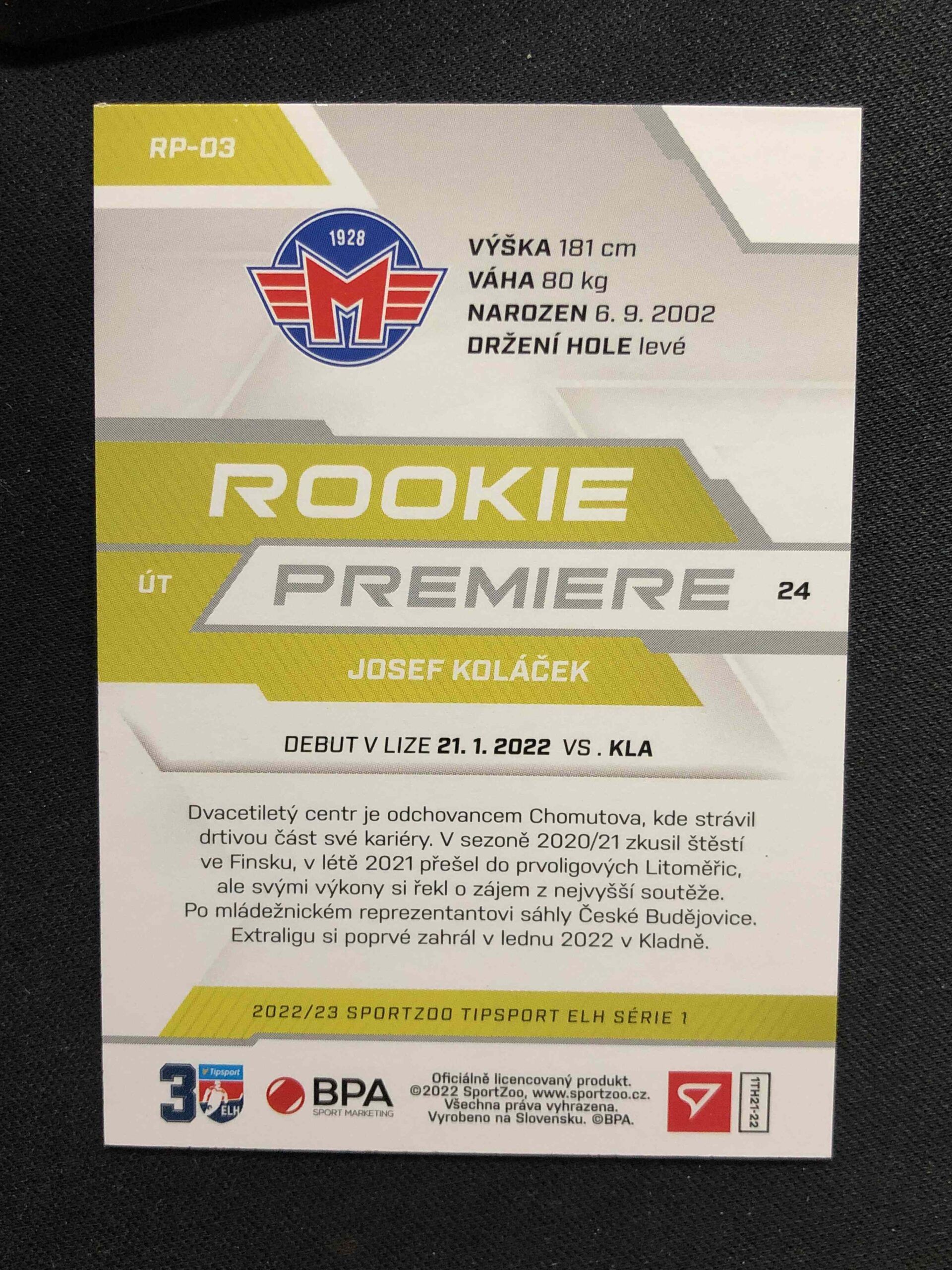 2022/2023 Sportzoo Serie 1 Rookie Premiere Limited RP-03 Josef Koláček Inzert 027/149