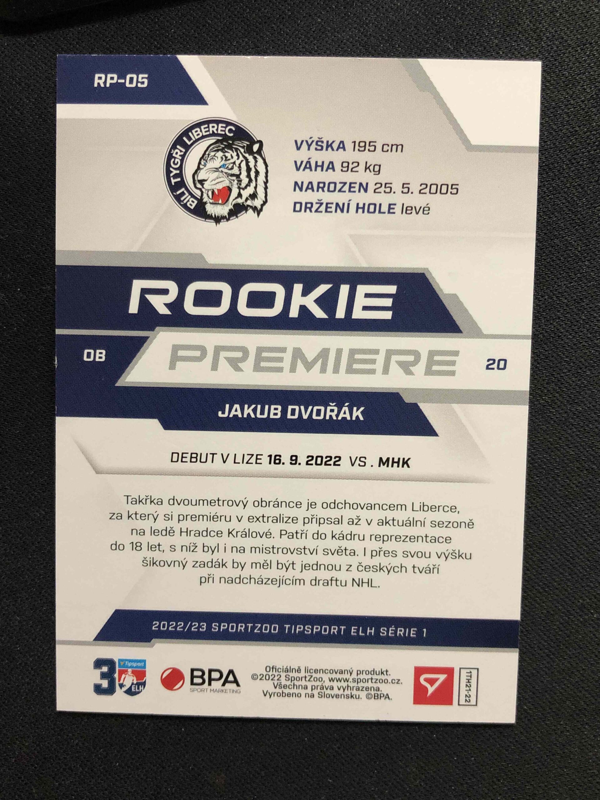 Sběratelská karta 2022/2023 Sportzoo Serie 1 Rookie Premiere Limited RP-05 Jakub Dvořák Inzert 062/149