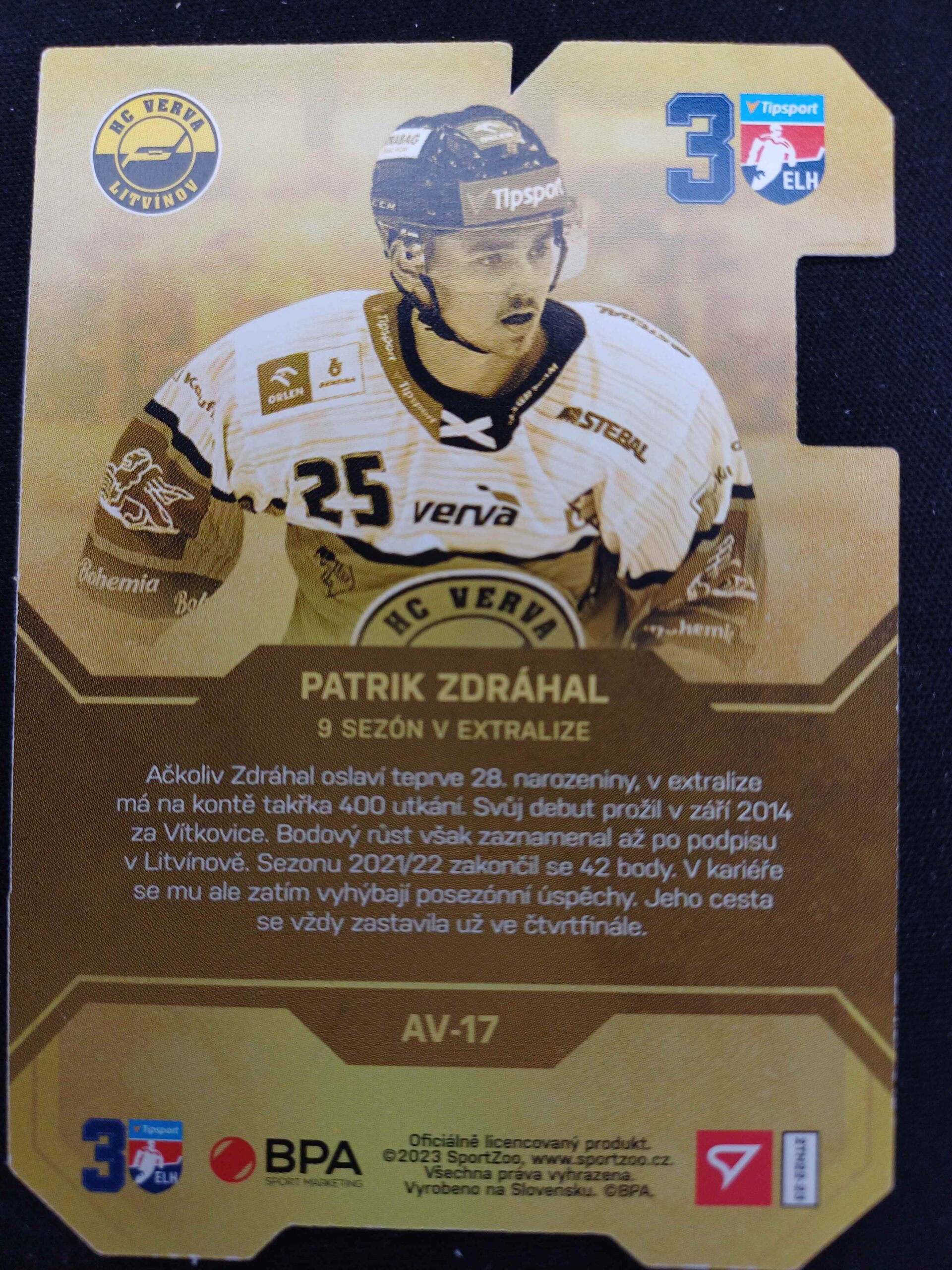 Sběratelská karta 2022/2023 Sportzoo Serie 2 30 Let v ELH AV-17 Patrik Zdráhal Inzert