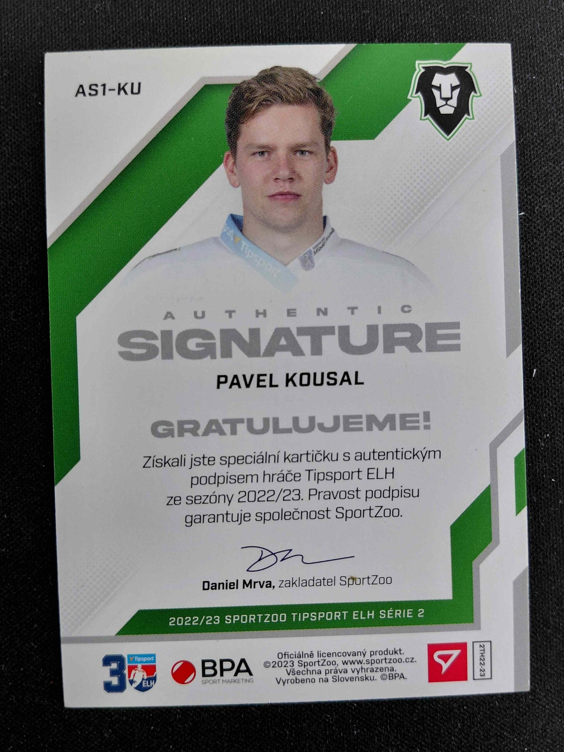 Sběratelská karta 2022/2023 Sportzoo Serie 2 Authentic Signature Level 1 AS1-KU Pavel Kousal AUTO 148/150