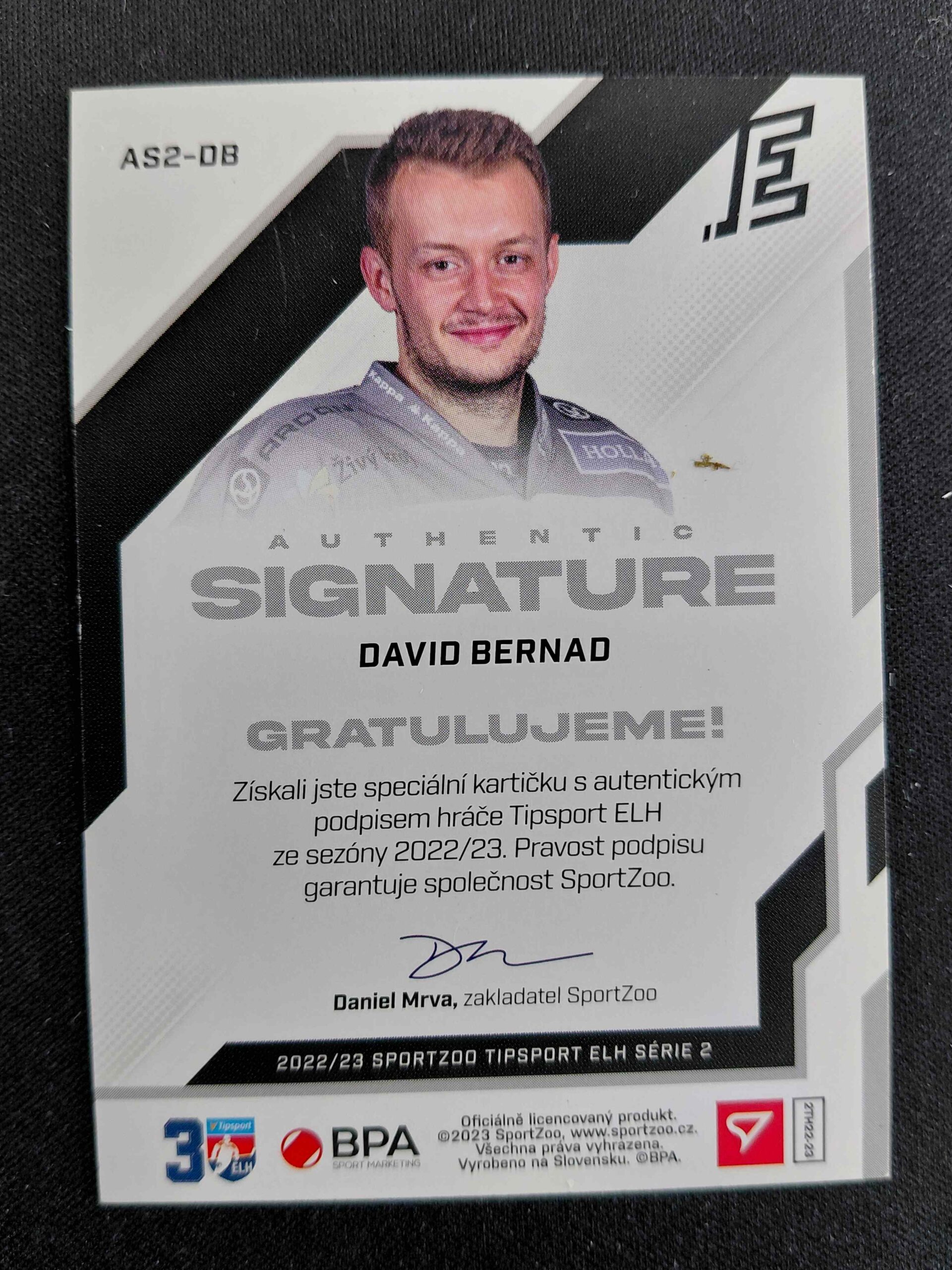Sběratelská karta 2022/2023 Sportzoo Serie 2 Authentic Signature Level 2 AS2-DB David Bernad AUTO 056/100