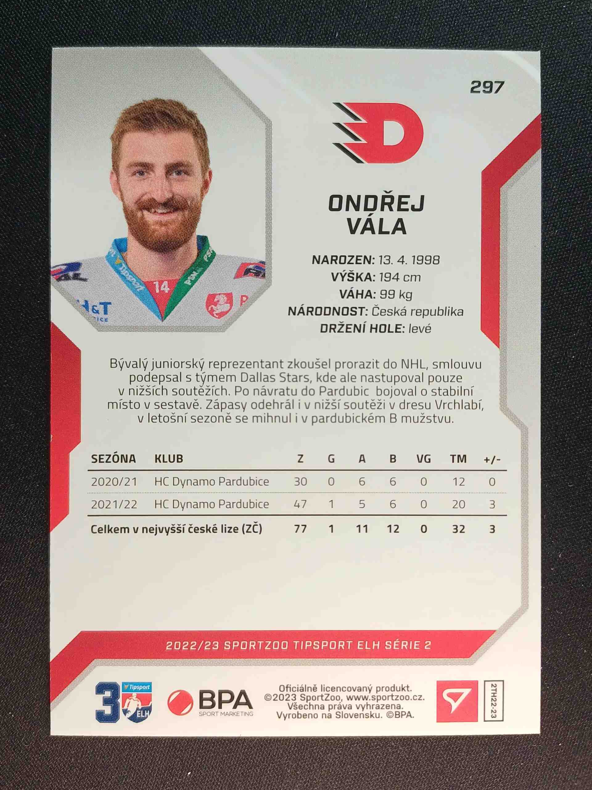 Sběratelská karta 2022/2023 Sportzoo Serie 2 Base 297 Ondřej Vála