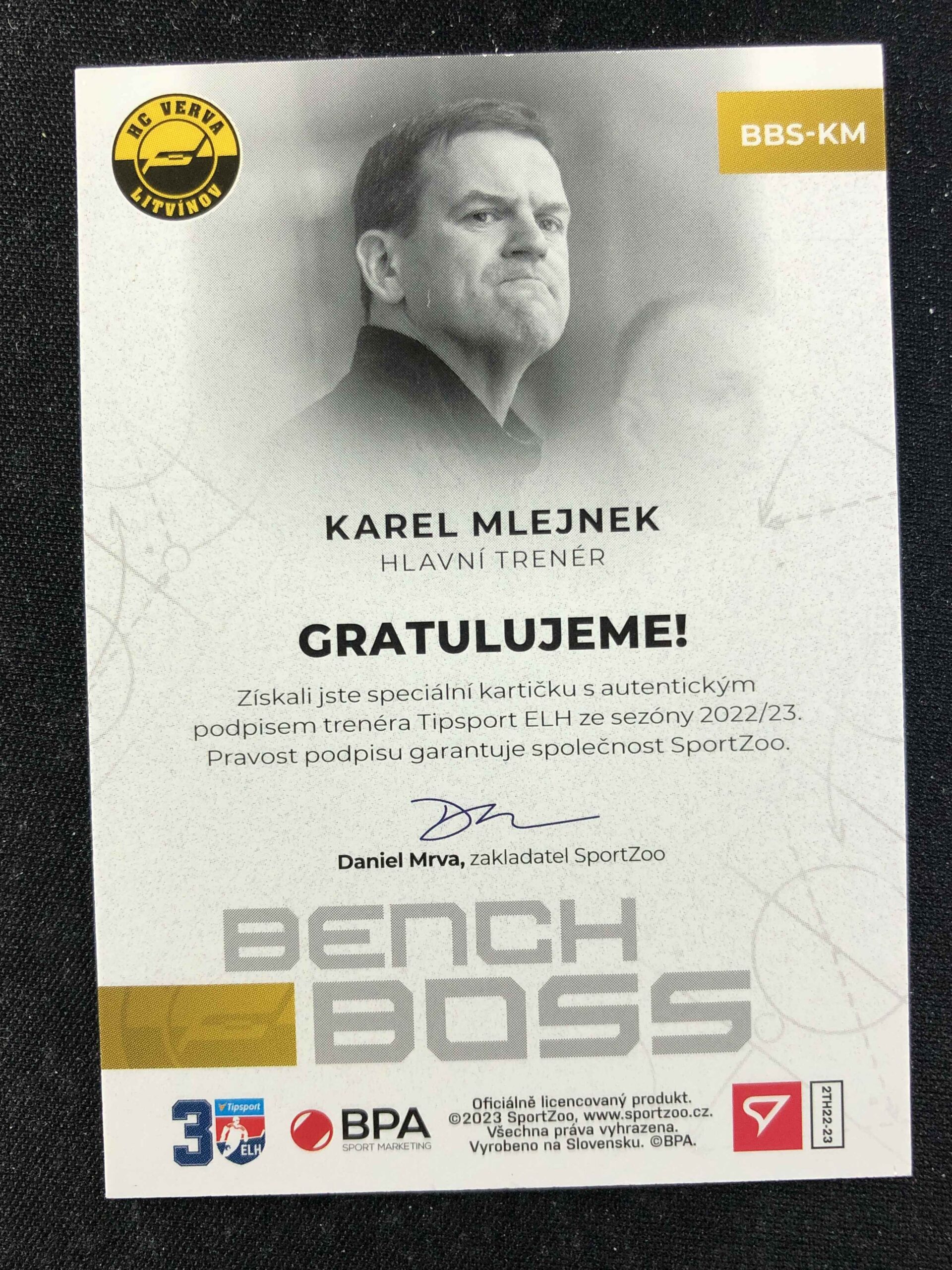 Sběratelská karta 2022/2023 Sportzoo Serie 2 Bench Boss AUTO BBS-KM Karel Mlejnek AUTO 32/60