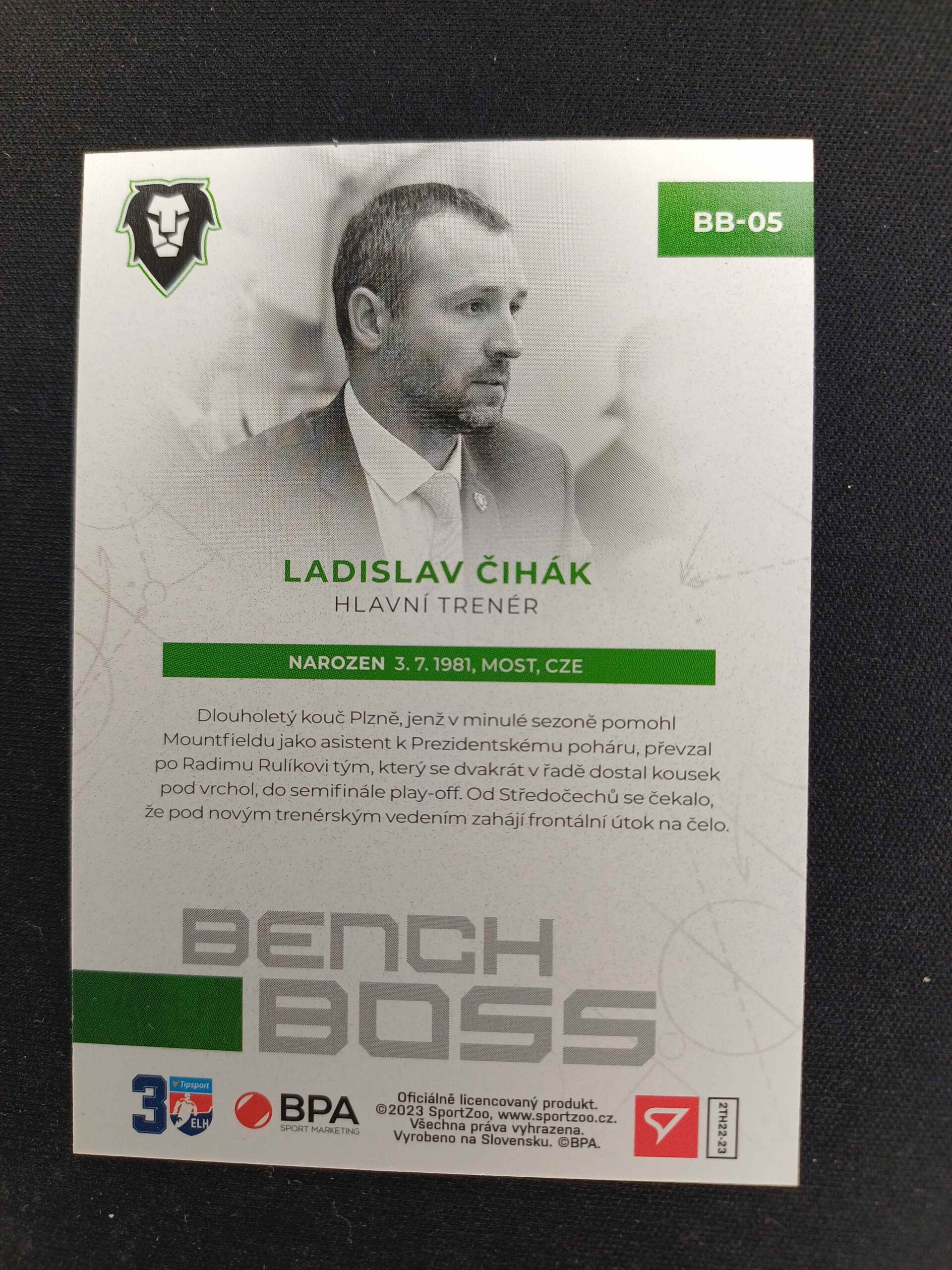 Sběratelská karta 2022/2023 Sportzoo Serie 2 Bench Boss BB-05 Ladislav Čihák Inzert