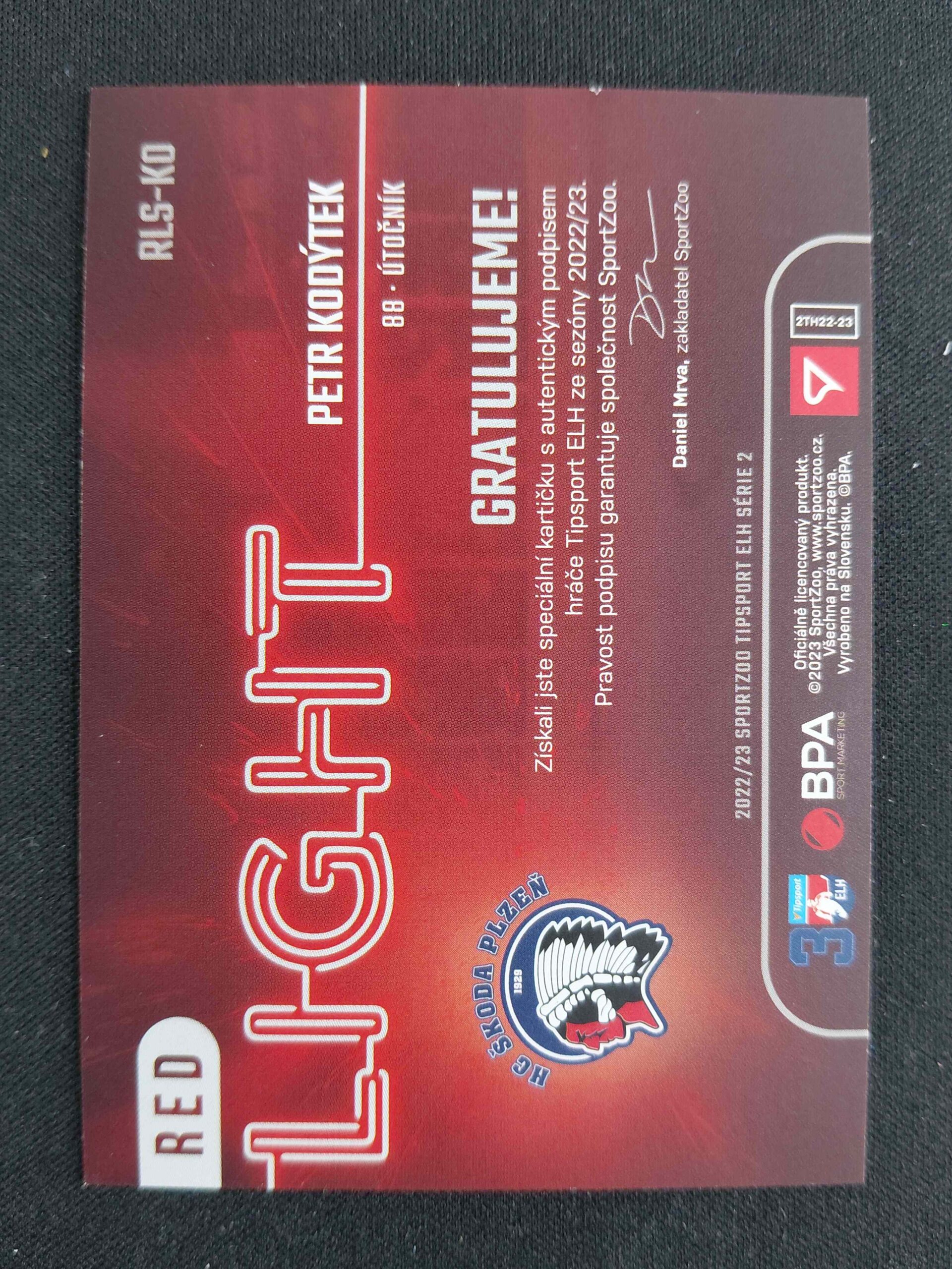 Sběratelská karta 2022/2023 Sportzoo Serie 2 Red Light AUTO RLS-KO Petr Kodýtek AUTO 28/65