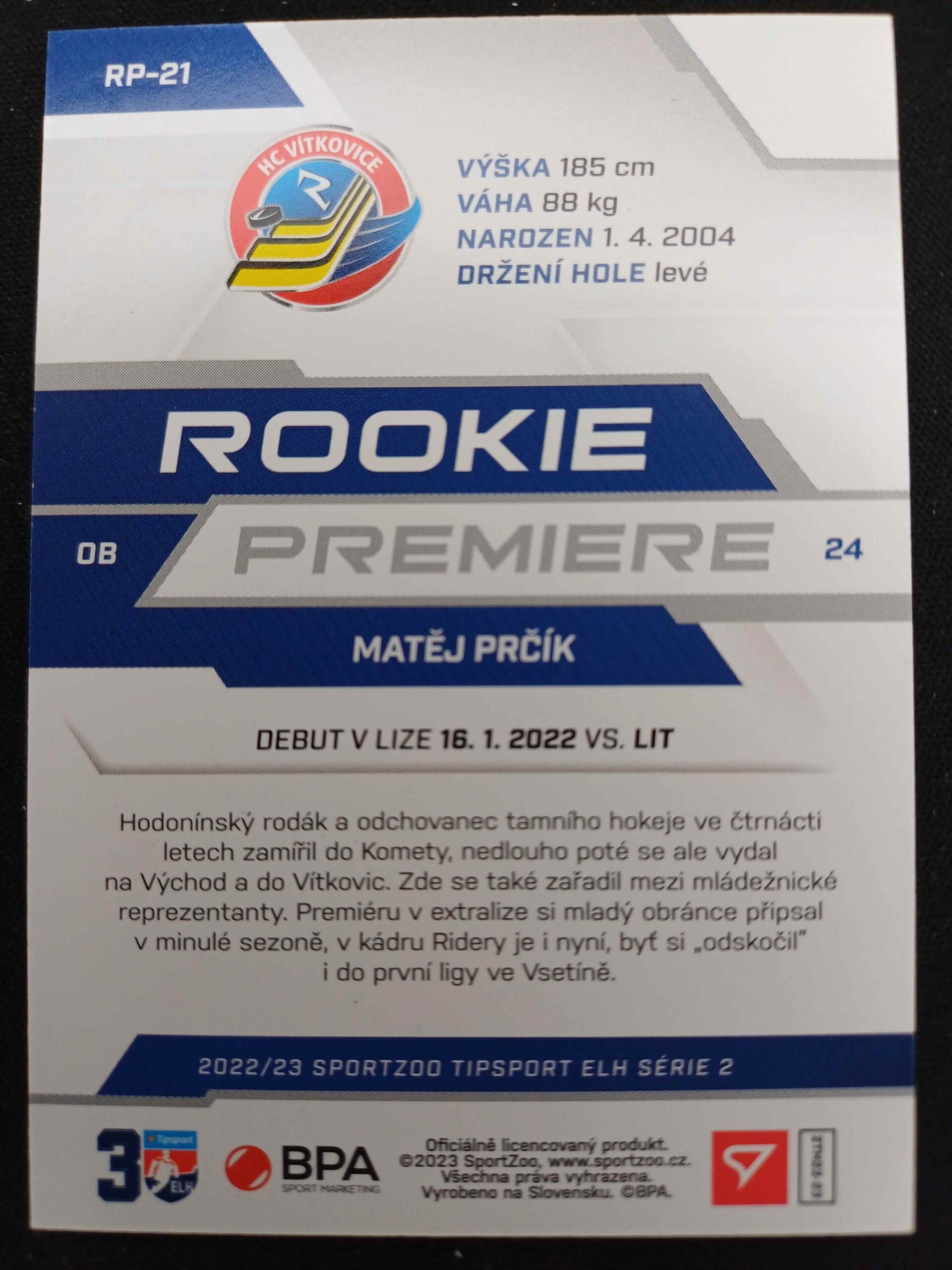 Sběratelská karta 2022/2023 Sportzoo Serie 2 Rookie Premiere Limited RP-21 Matěj Prčík Inzert 034/149