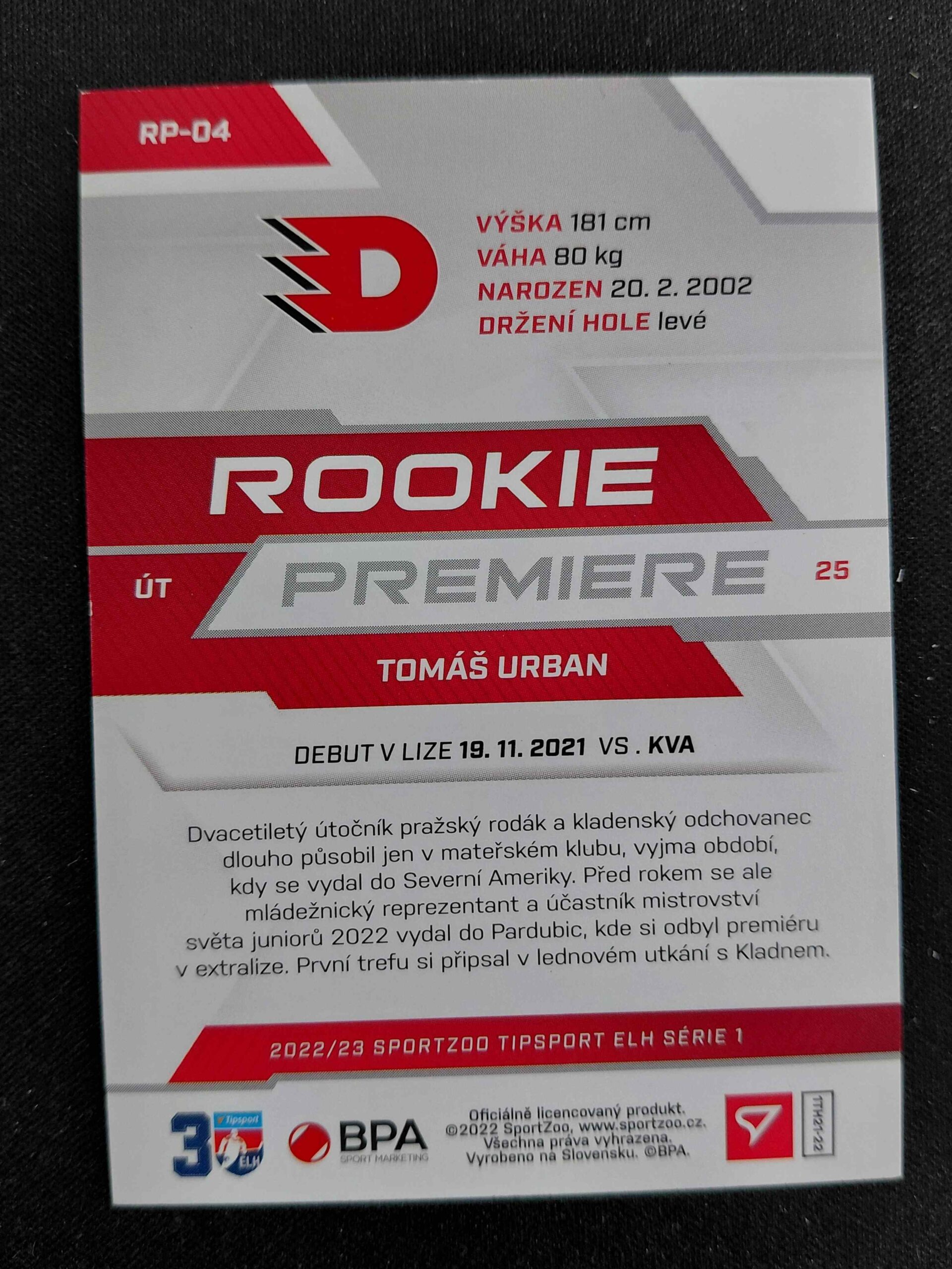 2022/2023 Sportzoo Serie 2 Rookie Premiere RP-04 Tomáš Urban Inzert