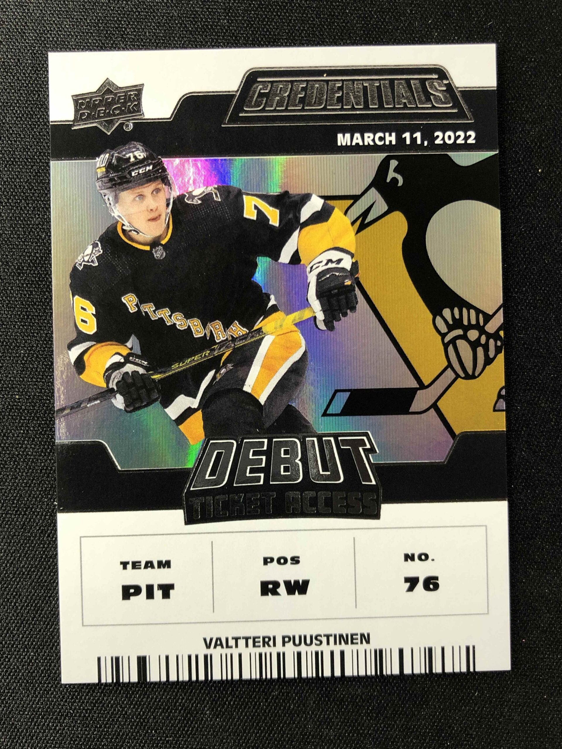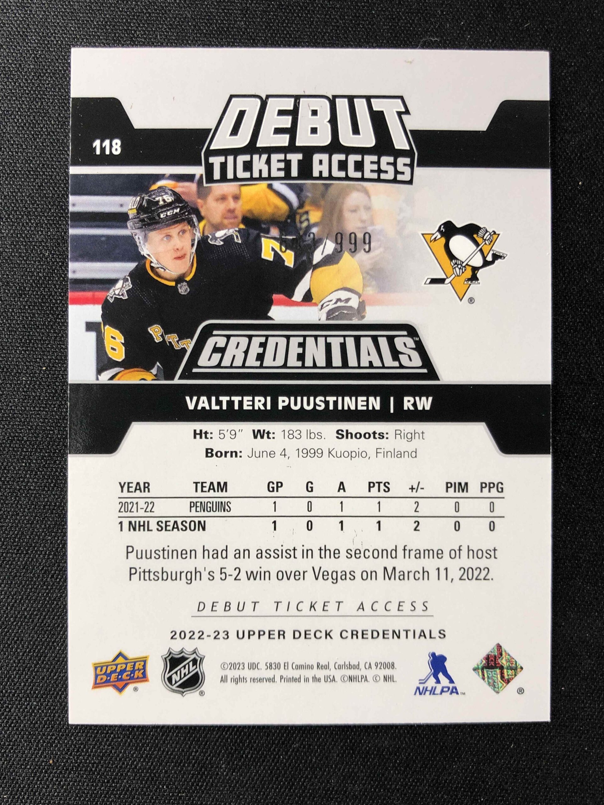 Sběratelská karta 2022/2023 Upper Deck Credentials Debut Ticket Access 118 Valtteri Puustinen Inzert