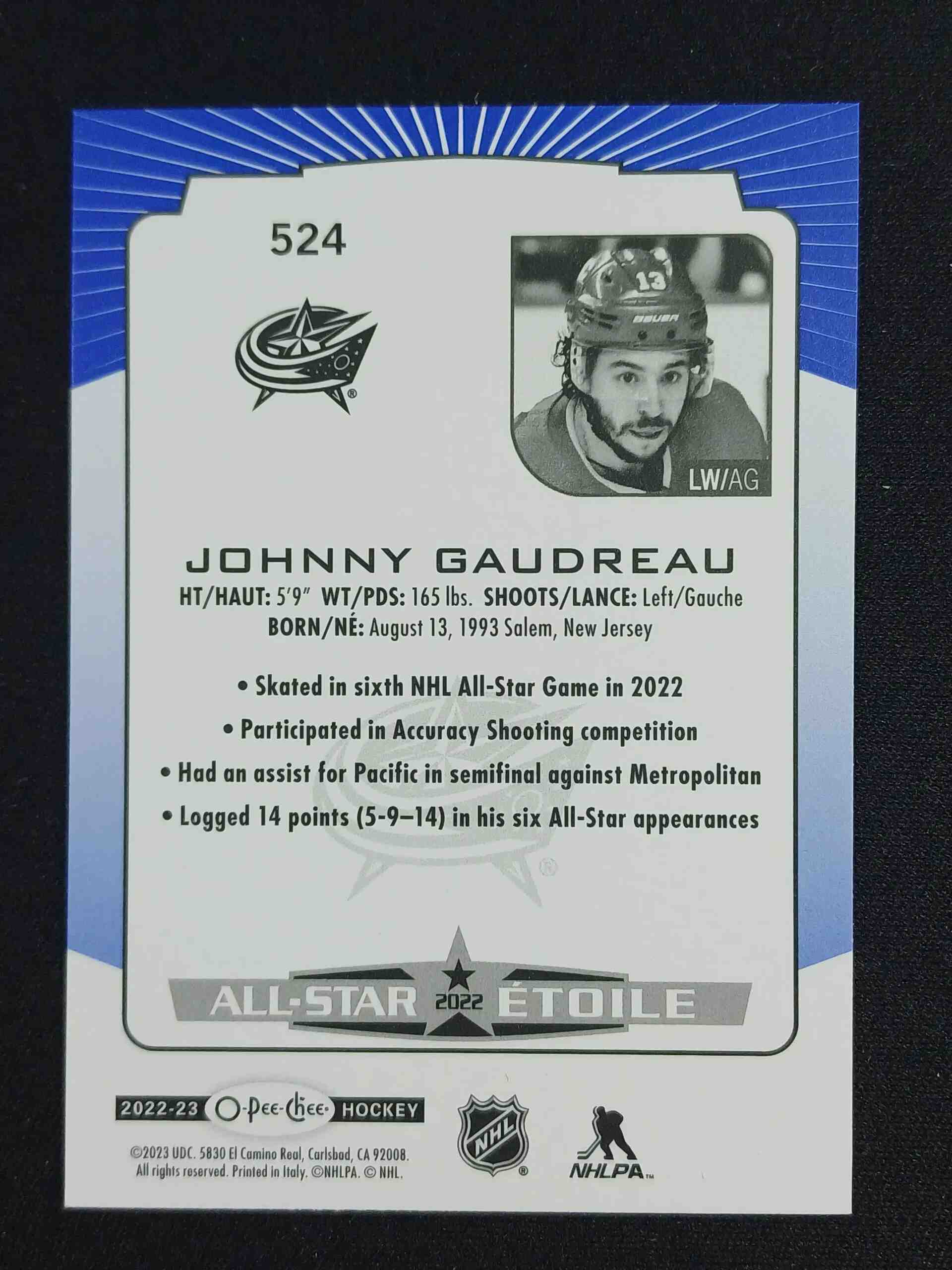 2022/2023 Upper Deck O-Pee-Chee Blue Border 524 Johnny Gaudreau Paralel