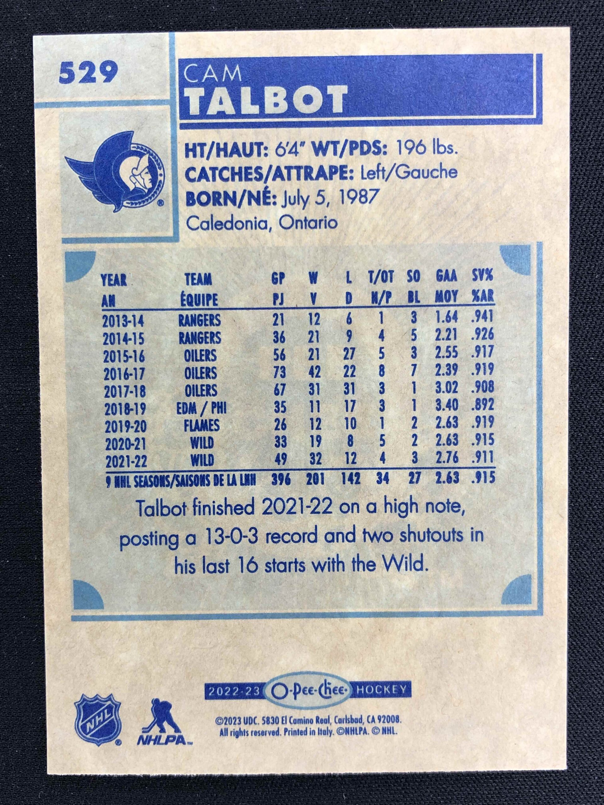 Sběratelská karta 2022/2023 Upper Deck O-Pee-Chee Retro 529 Cam Talbot Paralel