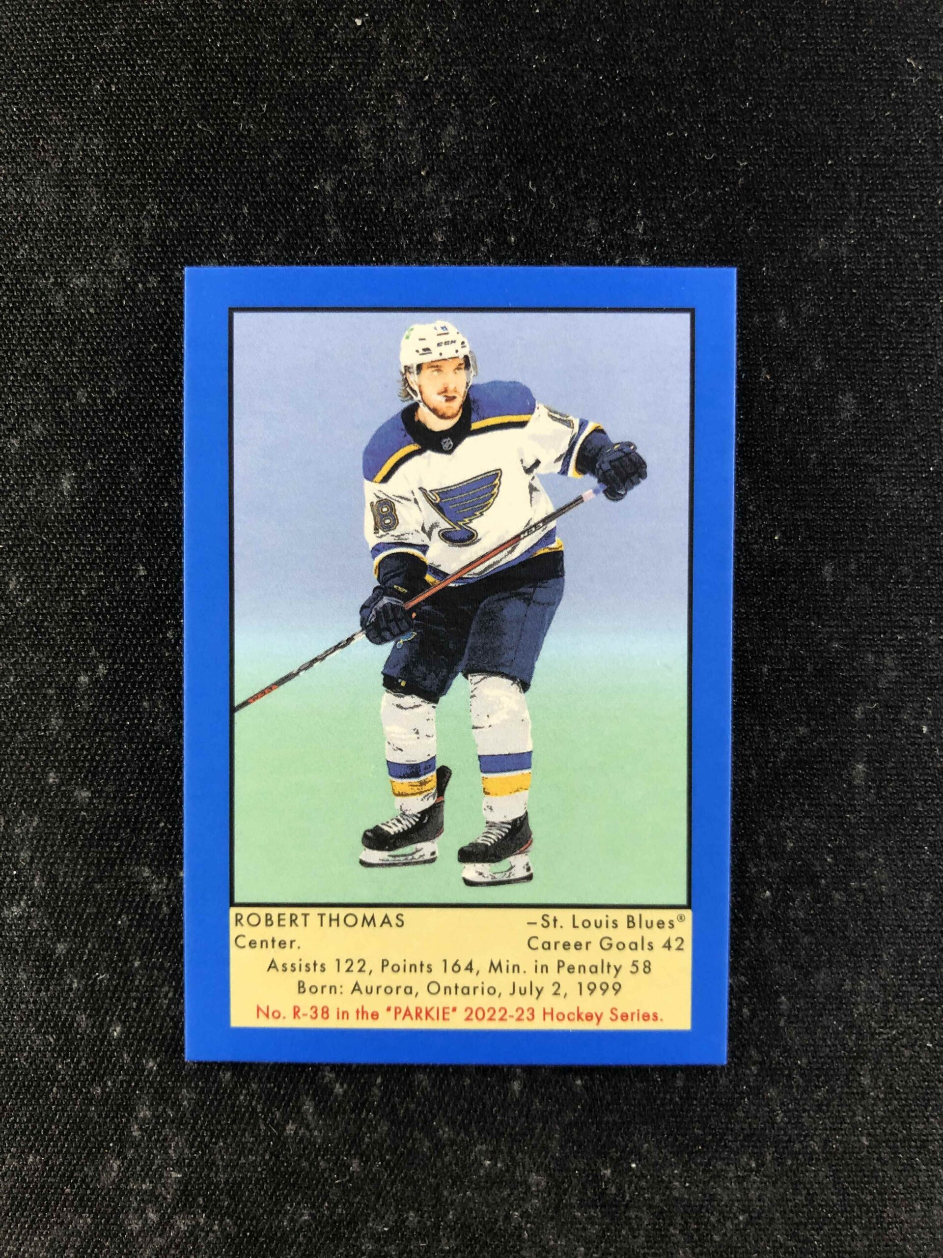 Sběratelská karta 2022/2023 Upper Deck Parkhurst Champions 51 Retros Blue R-38 Robert Thomas Inzert