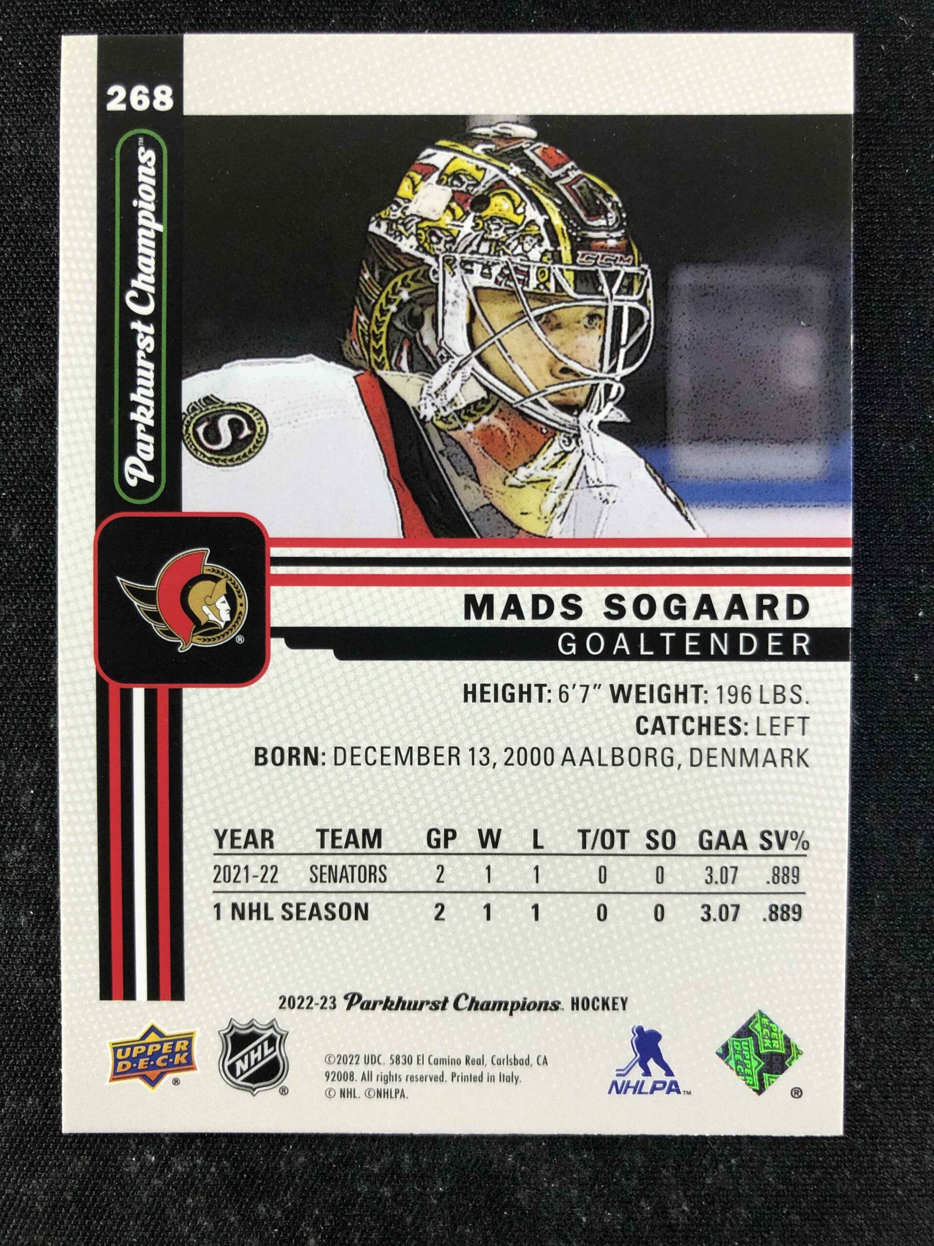 Sběratelská karta 2022/2023 Upper Deck Parkhurst Champions Base 268 Mads Sogaard