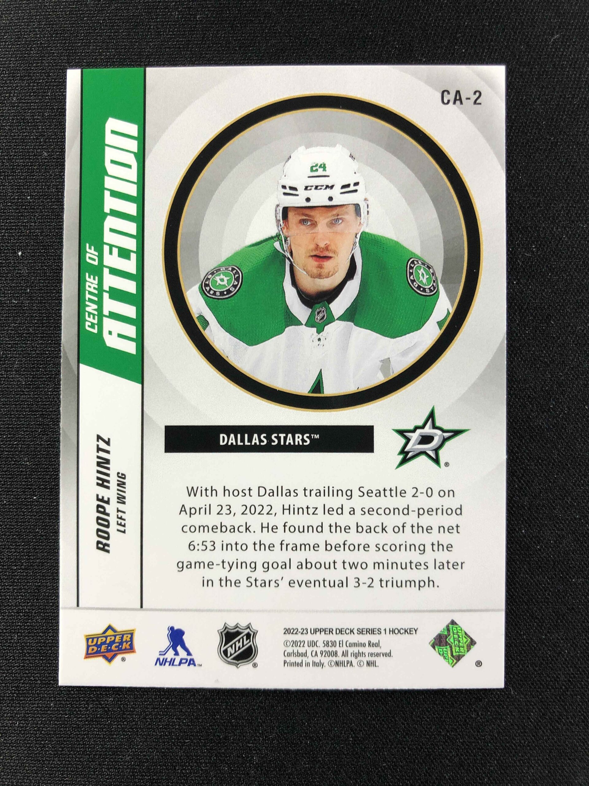 Sběratelská karta 2022/2023 Upper Deck Series 1 Centre of Attention CA-2 Roope Hintz Inzert