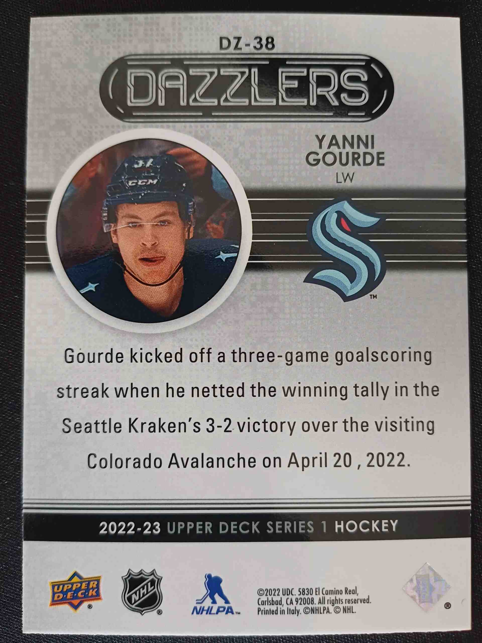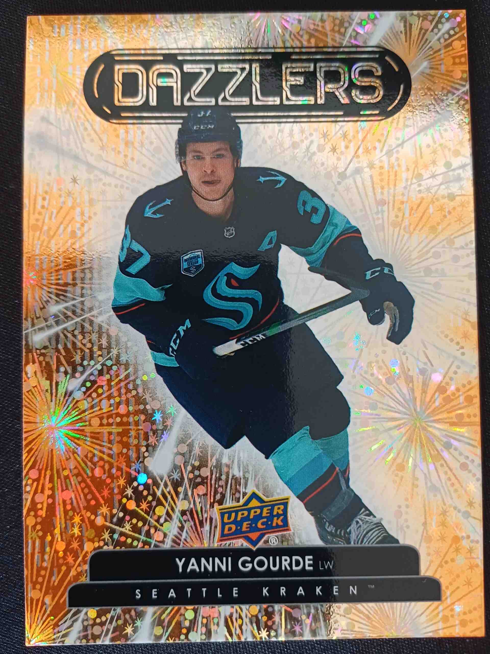 Sběratelská karta 2022/2023 Upper Deck Series 1 Dazzlers Orange DZ-38 Yanni Gourde Inzert
