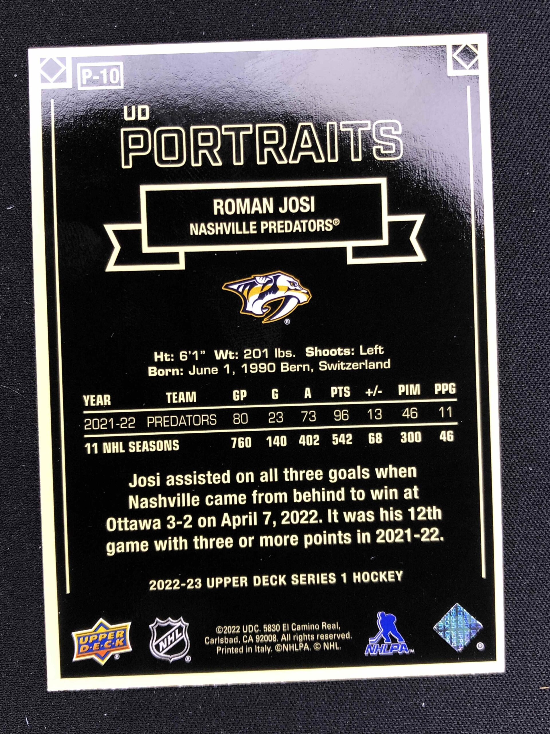 Sběratelská karta 2022/2023 Upper Deck Series 1 Portraits P-10 Roman Josi Inzert
