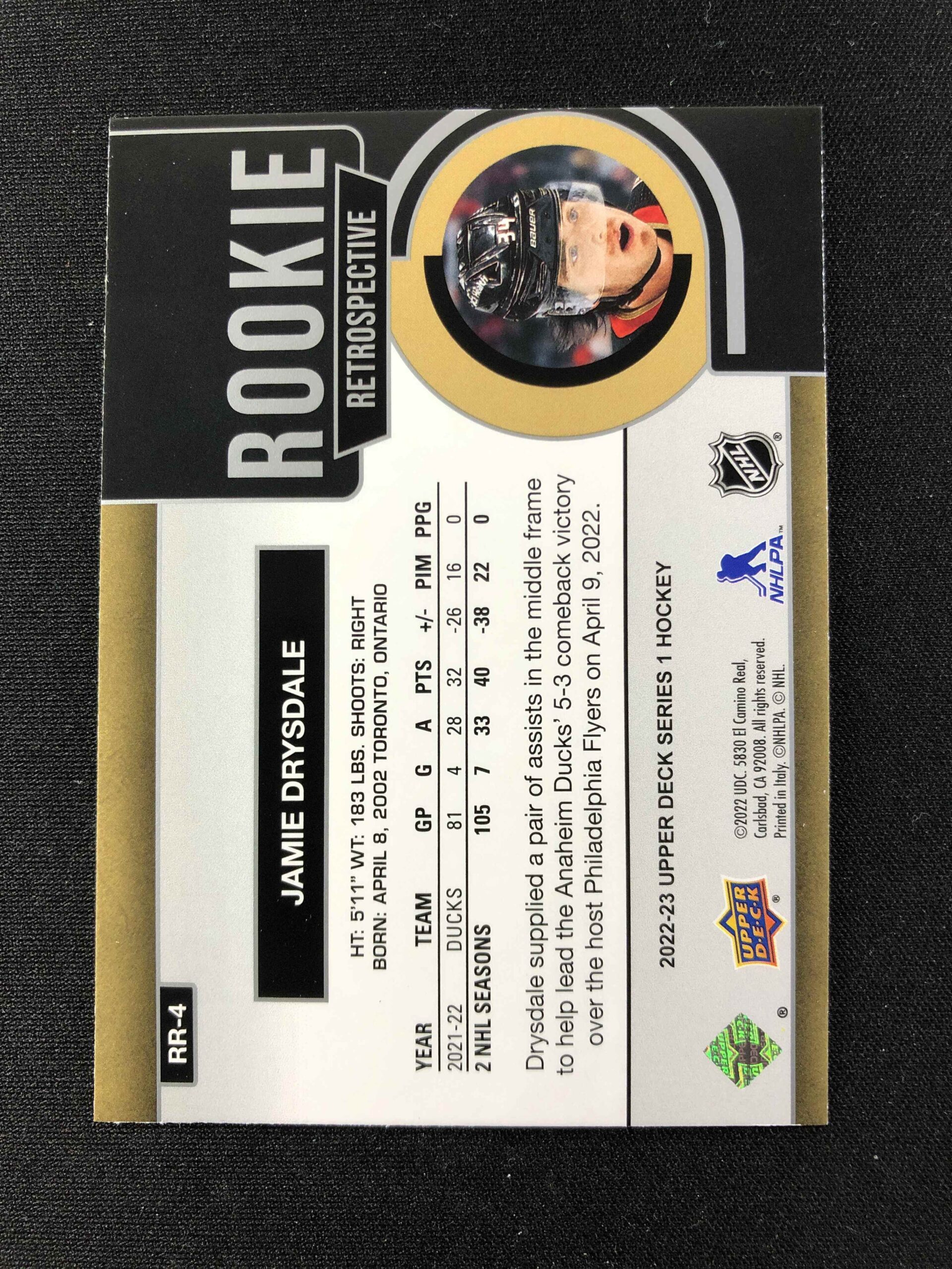 Sběratelská karta 2022/2023 Upper Deck Series 1 Rookie Retrospective RR-4 Jamie Drysdale Inzert
