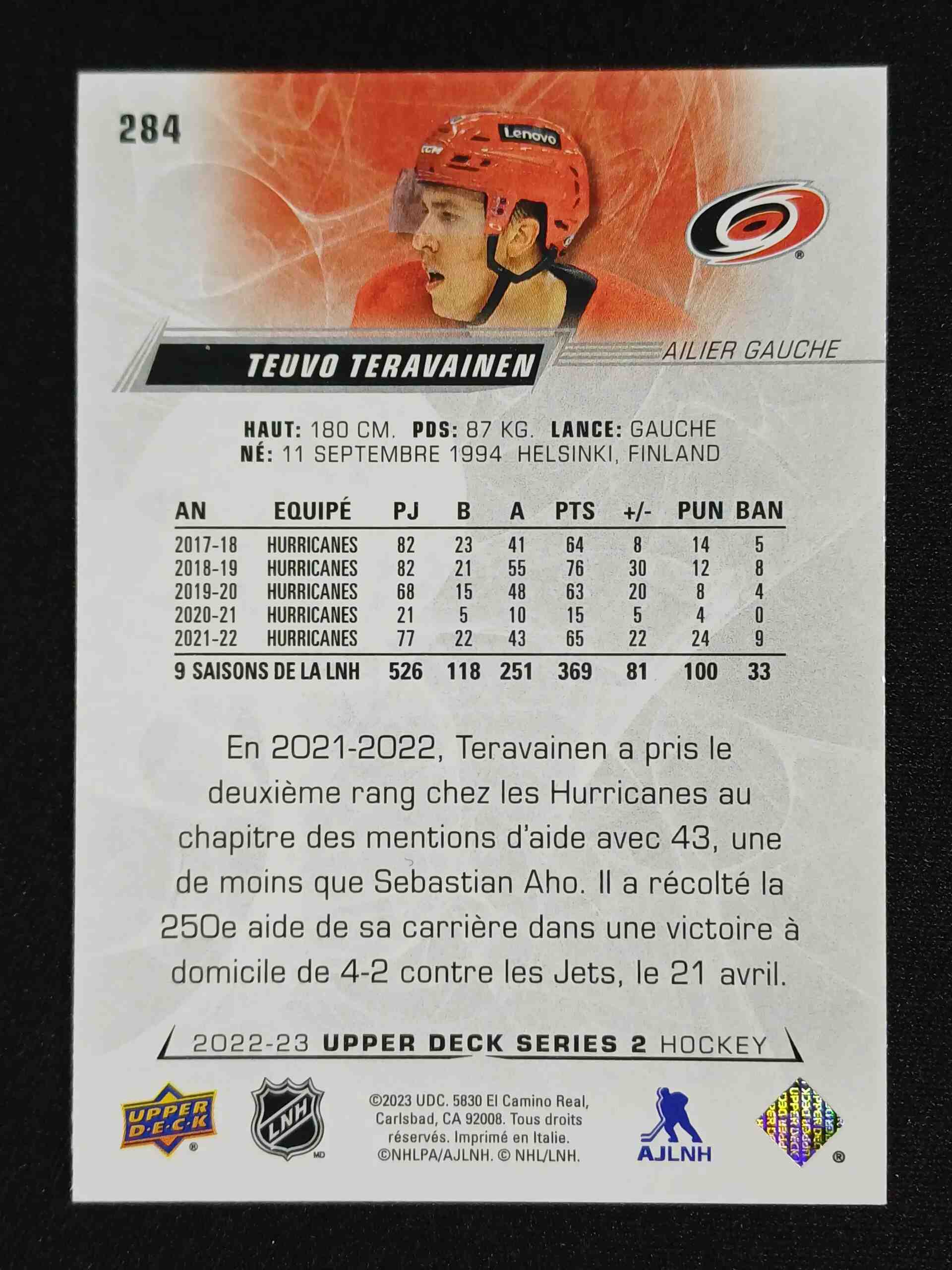Sběratelská karta 2022/2023 Upper Deck Series 2 Base French 284 Teuvo Teravainen Paralel