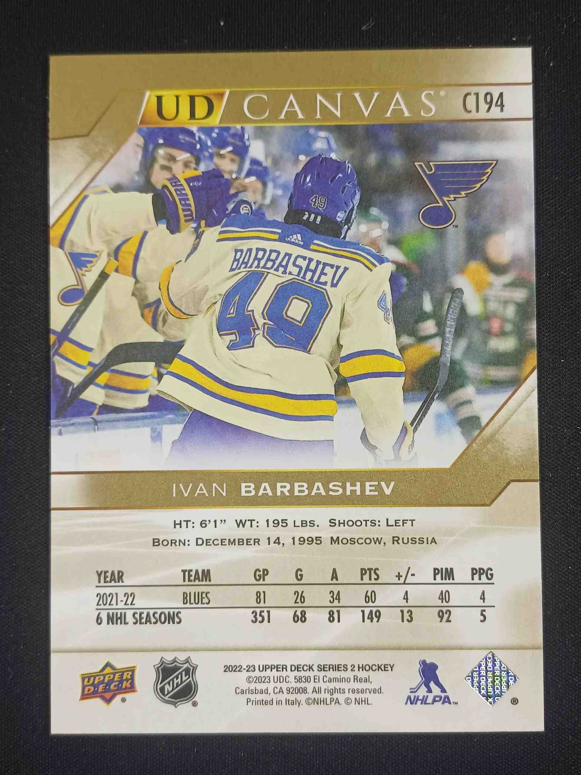 Sběratelská karta 2022/2023 Upper Deck Series 2 Canvas C194 Ivan Barbashev Inzert