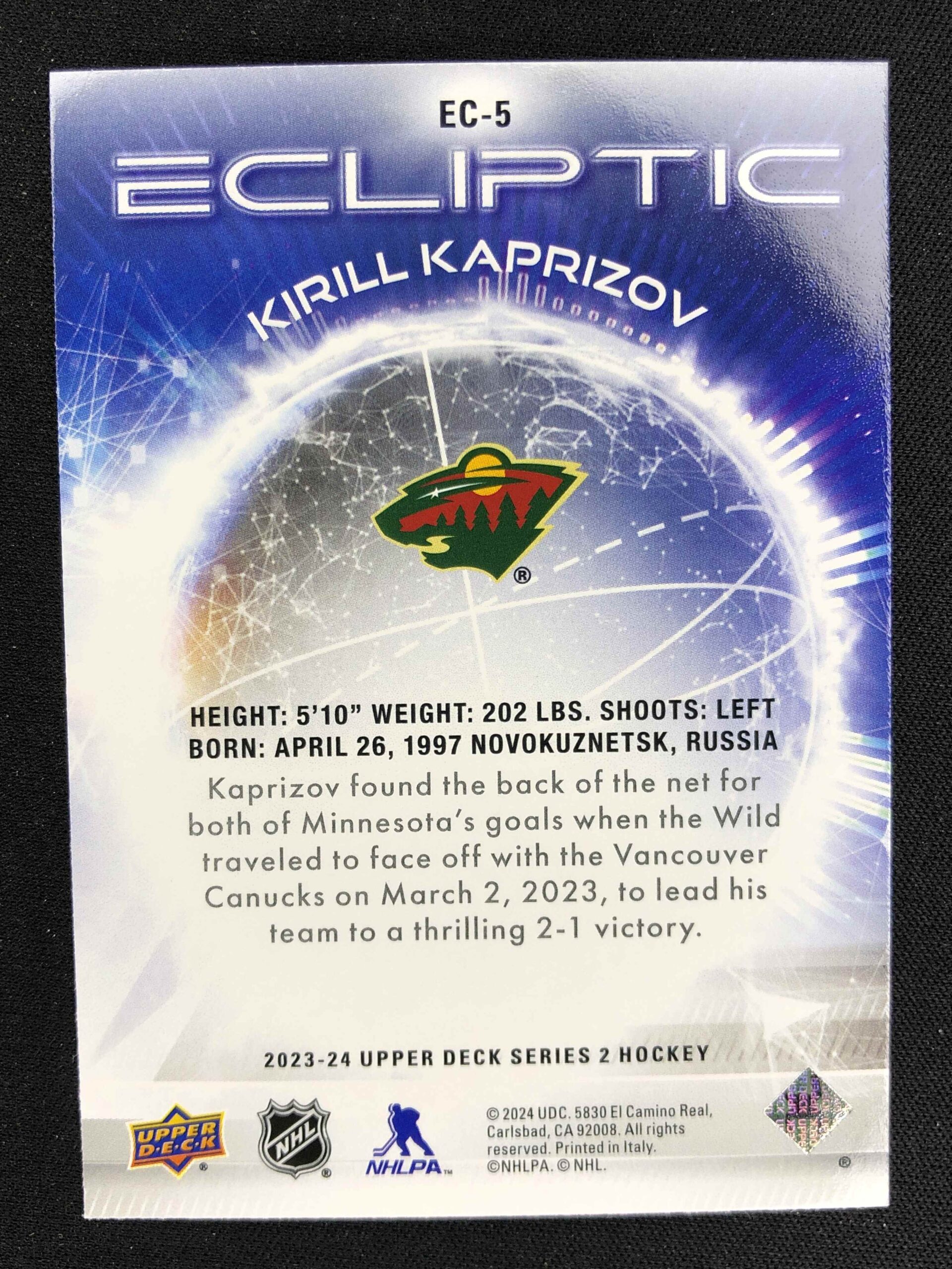 Sběratelská karta 2022/2023 Upper Deck Series 2 Ecliptic EC-5 Kirill Kaprizov Inzert