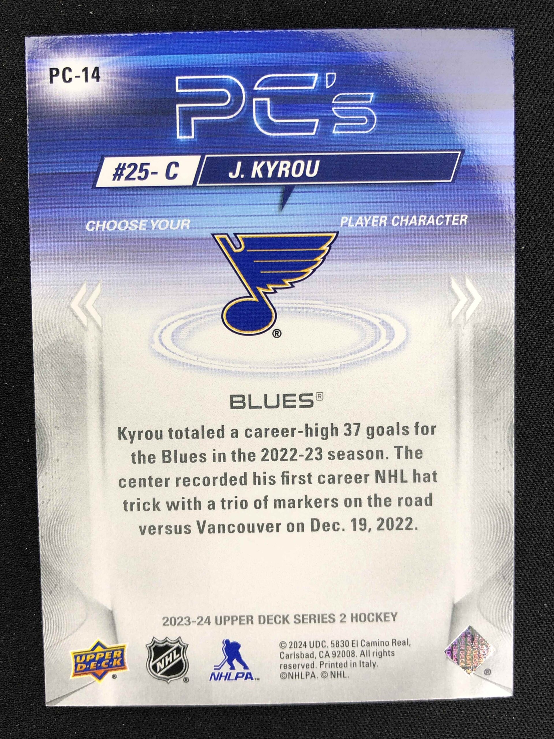 2022/2023 Upper Deck Series 2 PC’s PC-14 Jordan Kyrou Inzert
