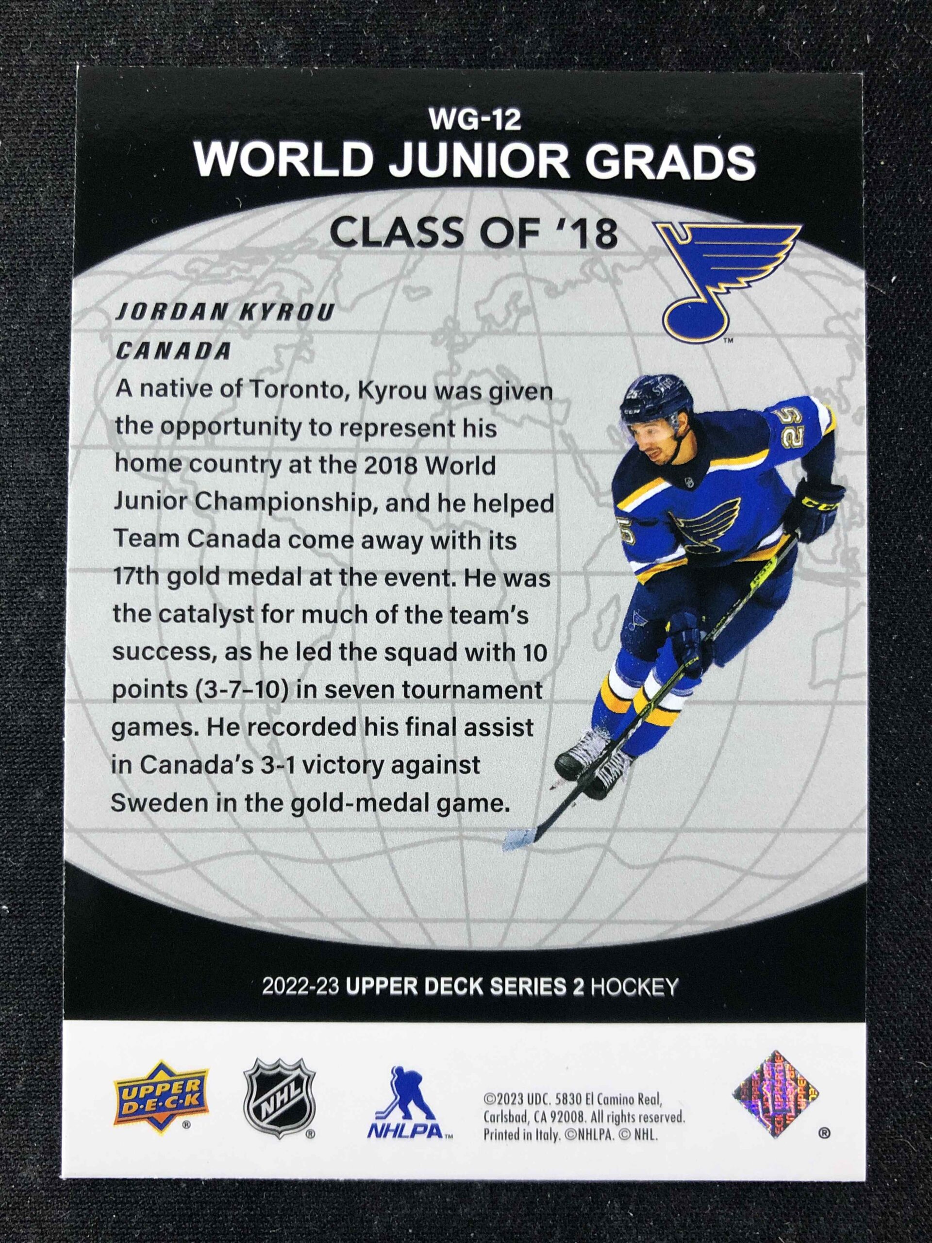 Sběratelská karta 2022/2023 Upper Deck Series 2 World Junior Grads WG-12 Jordan Kyrou Inzert