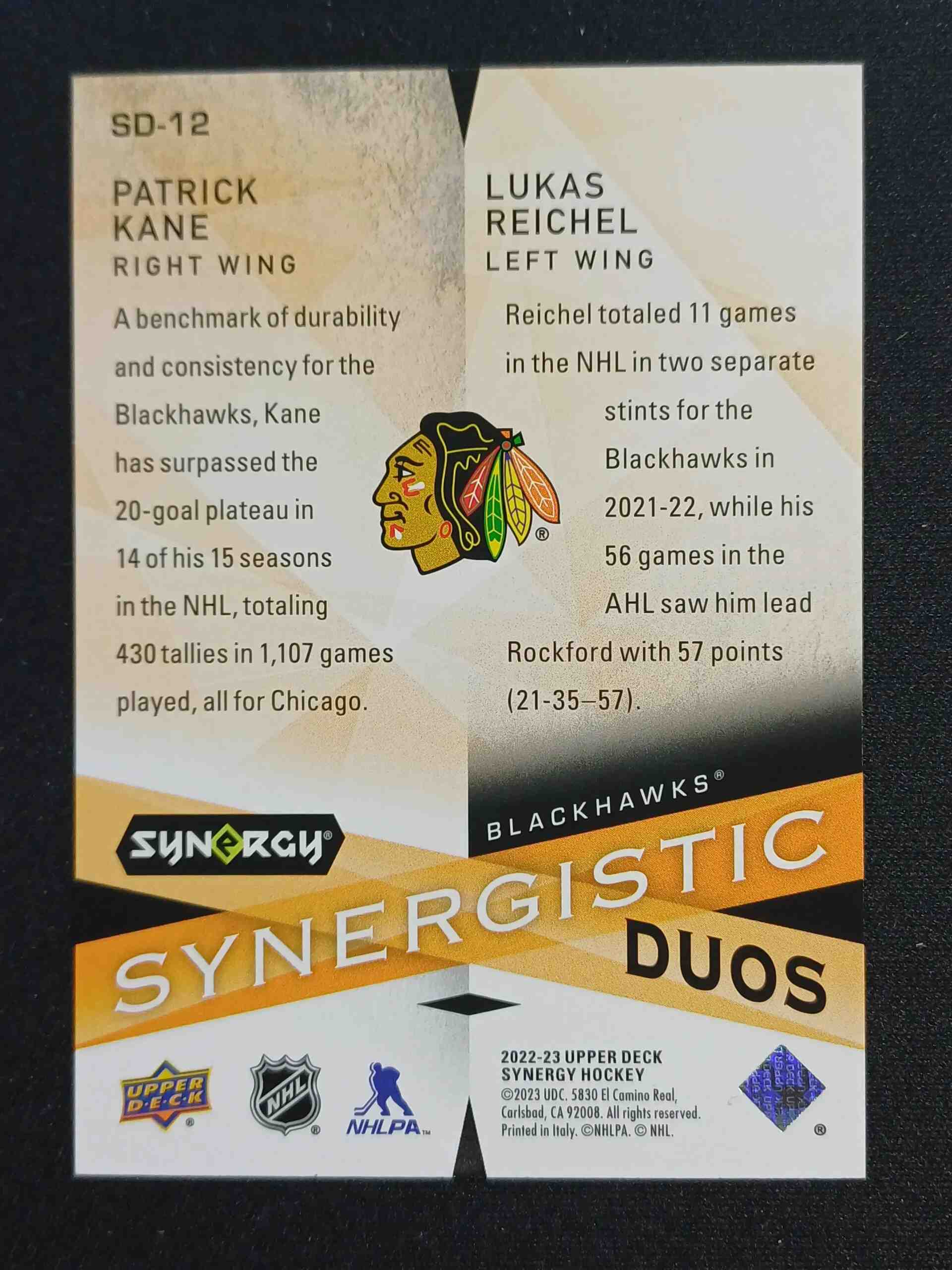 2022/2023 Upper Deck Synergy Synergistic Duos Green SD-12 Lukas Reichel Inzert 030/249