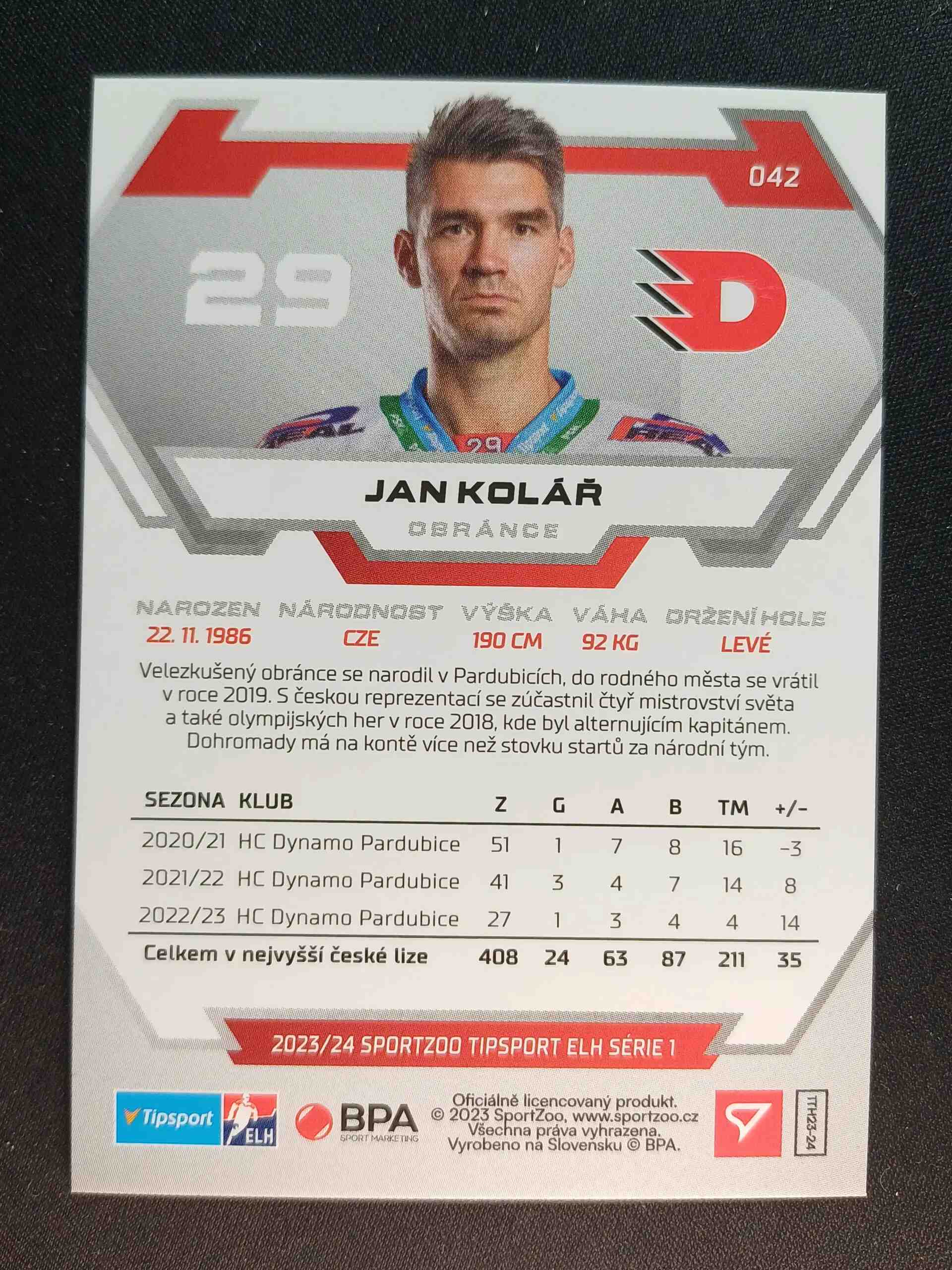 Sběratelská karta 2023/2024 Sportzoo Serie 1 Base 42 Jan Kolář