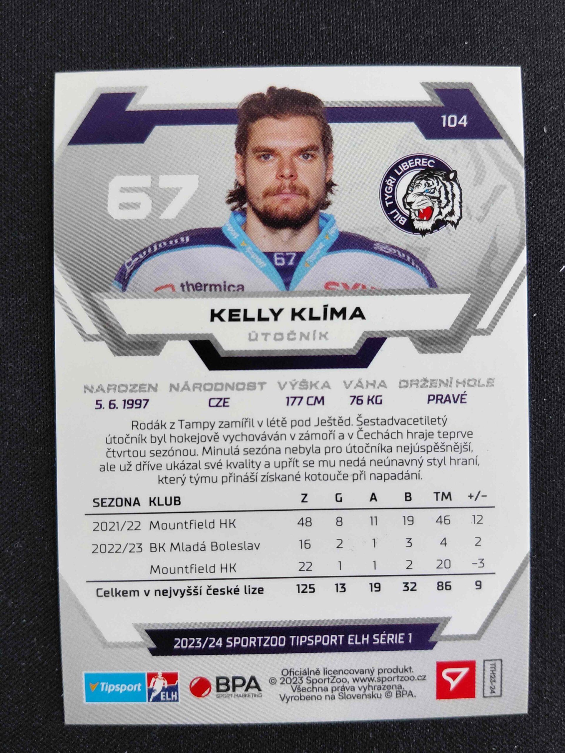 Sběratelská karta 2023/2024 Sportzoo Serie 1 Blade Sparks 104 Kelly Klíma Paralel /25